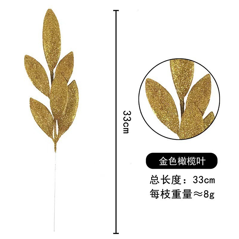 Золотая пудра, 6 штук оливковых листьев, иголок, веток, украшения для рождественского дерева