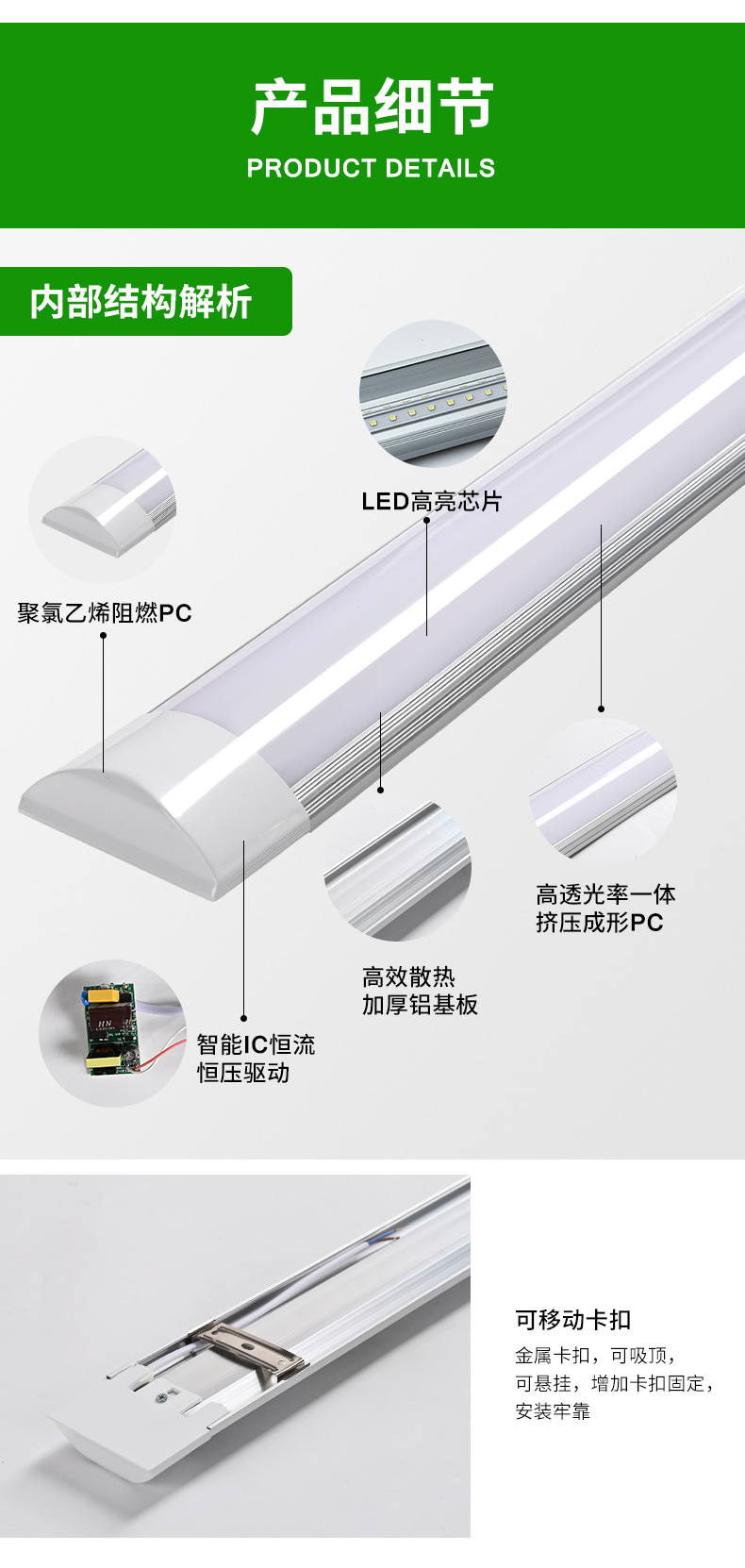 Светодиодная лампа для очистки, интегрированная опора, лампа с защитой от влаги, высокая яркость, широкое напряжение T8, офисное освещение