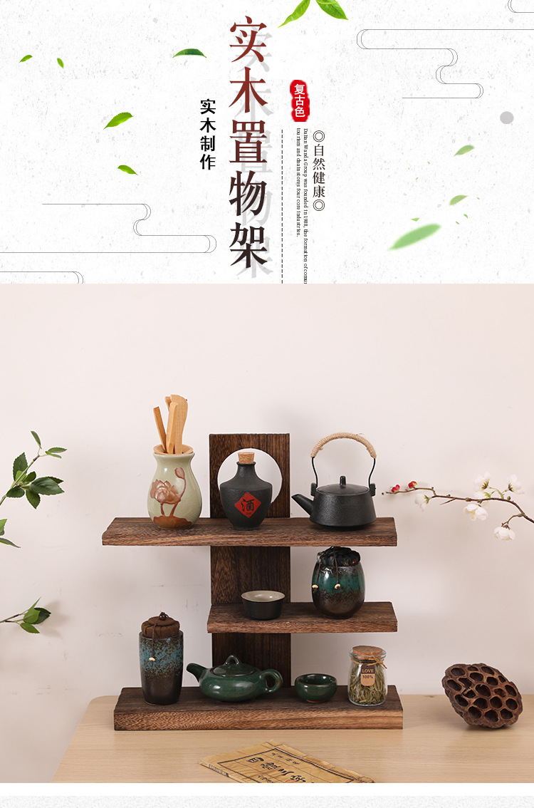Антикварный стеллаж, многоуровневый настольный стеллаж для чайного набора