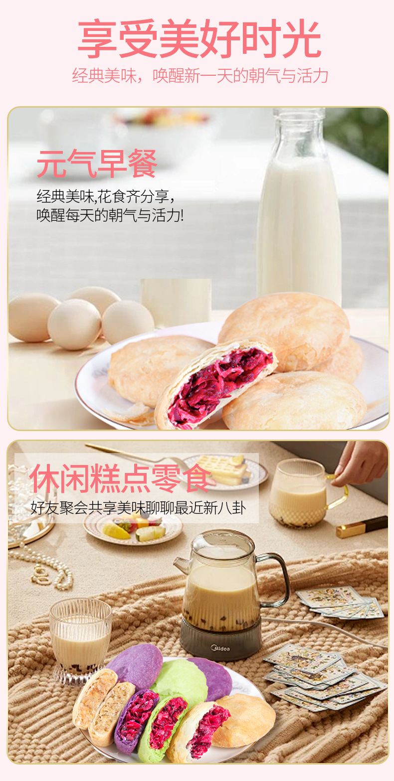 Сырьё и ингредиенты Wheat flour, vegetable oil, edible lard, white sugar, double red rose, honey, etc. [see packaging for details]