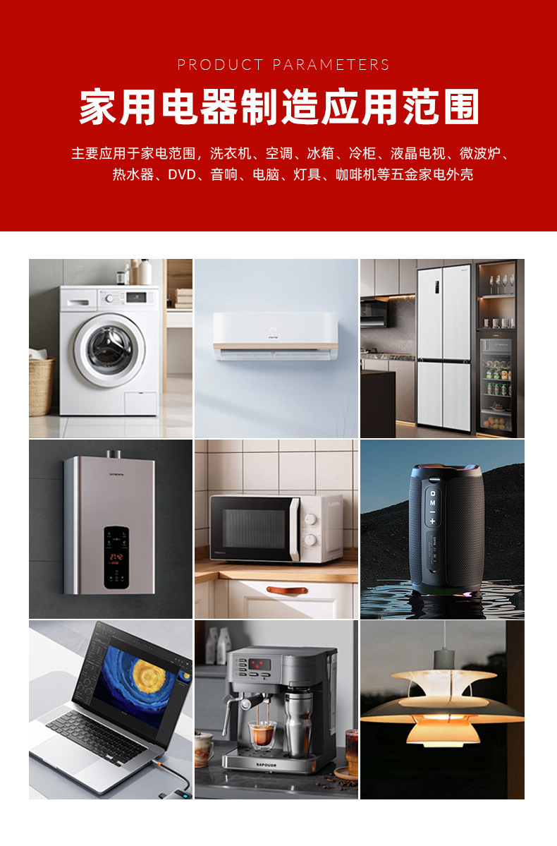 Область применения Metal products, Home appliances, Precision electronics, Architectural decoration, Catering kitchenware