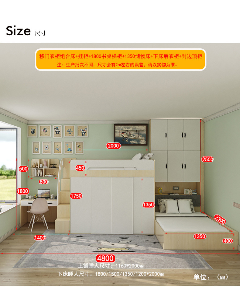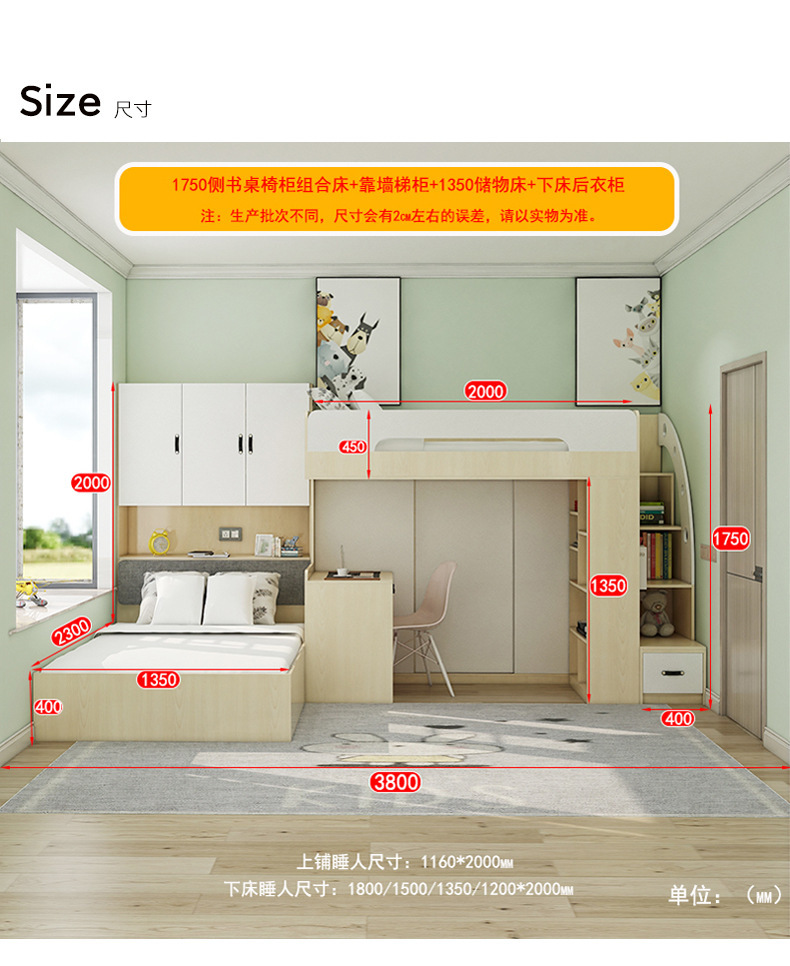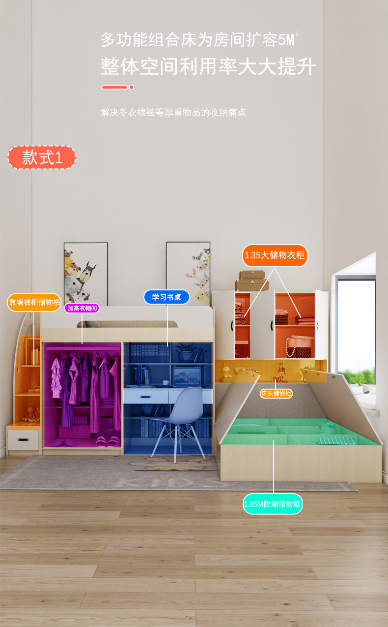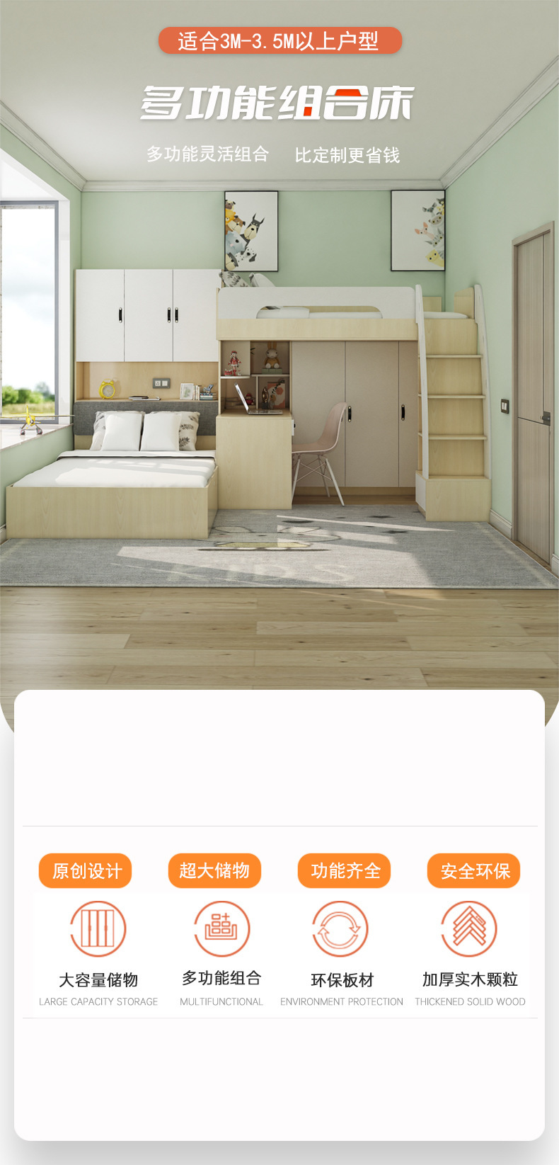 Многофункциональная двухъярусная кровать с рабочим местом и шкафом для девочек и мальчиков