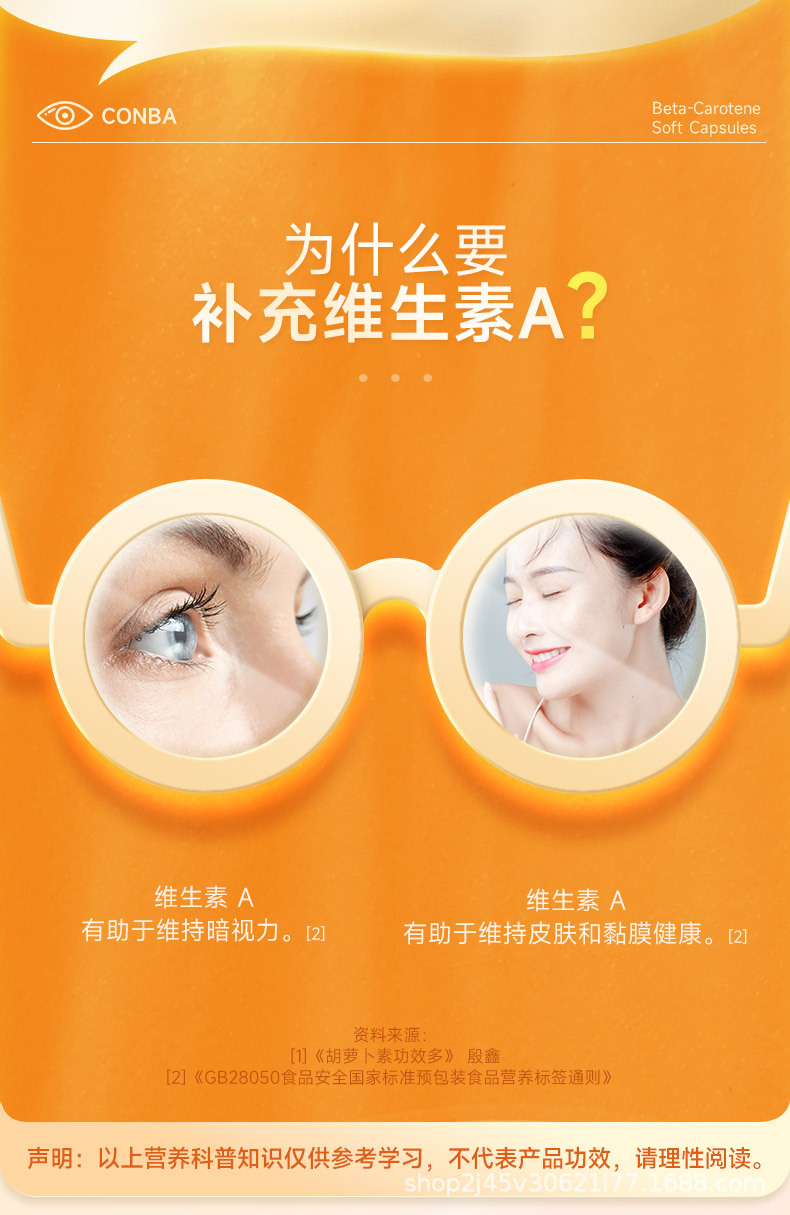 Капсулы бета-каротина Conba для мужчин и женщин, витамин A, продукт официального подлинного качества