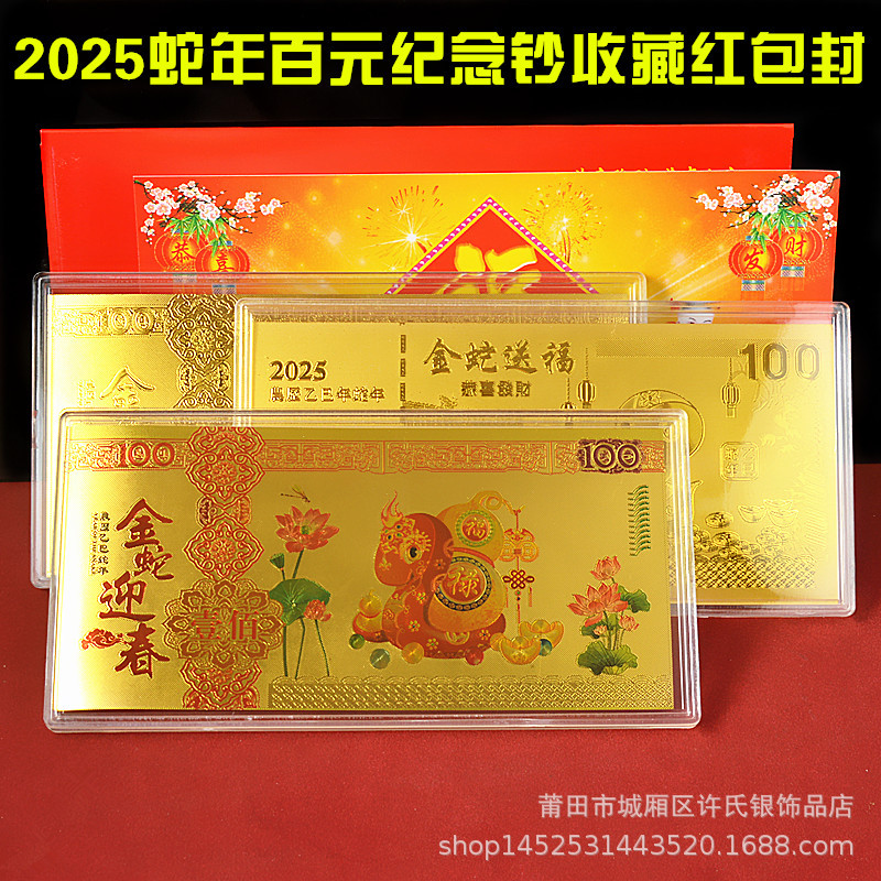 ![]() | Golden snake welcoming spring snake banknote + acrylic shell + red envelope opp bag | ¥2.0 / ≈ 24 ₽ | 9697 | 5571540293584 | |