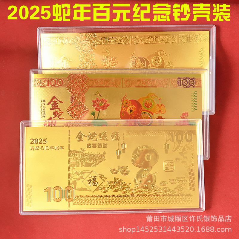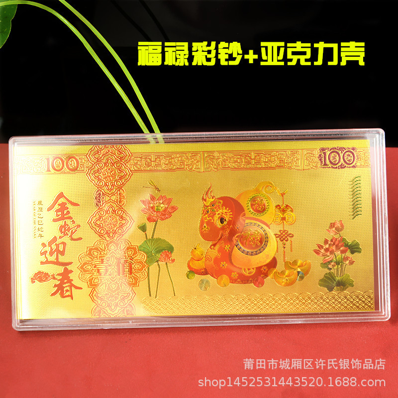 Золотая банкнота года змеи, памятная банкнота 100 юаней, золотая фольгированная банкнота, акриловая оболочка, новогодний свадебный подарок