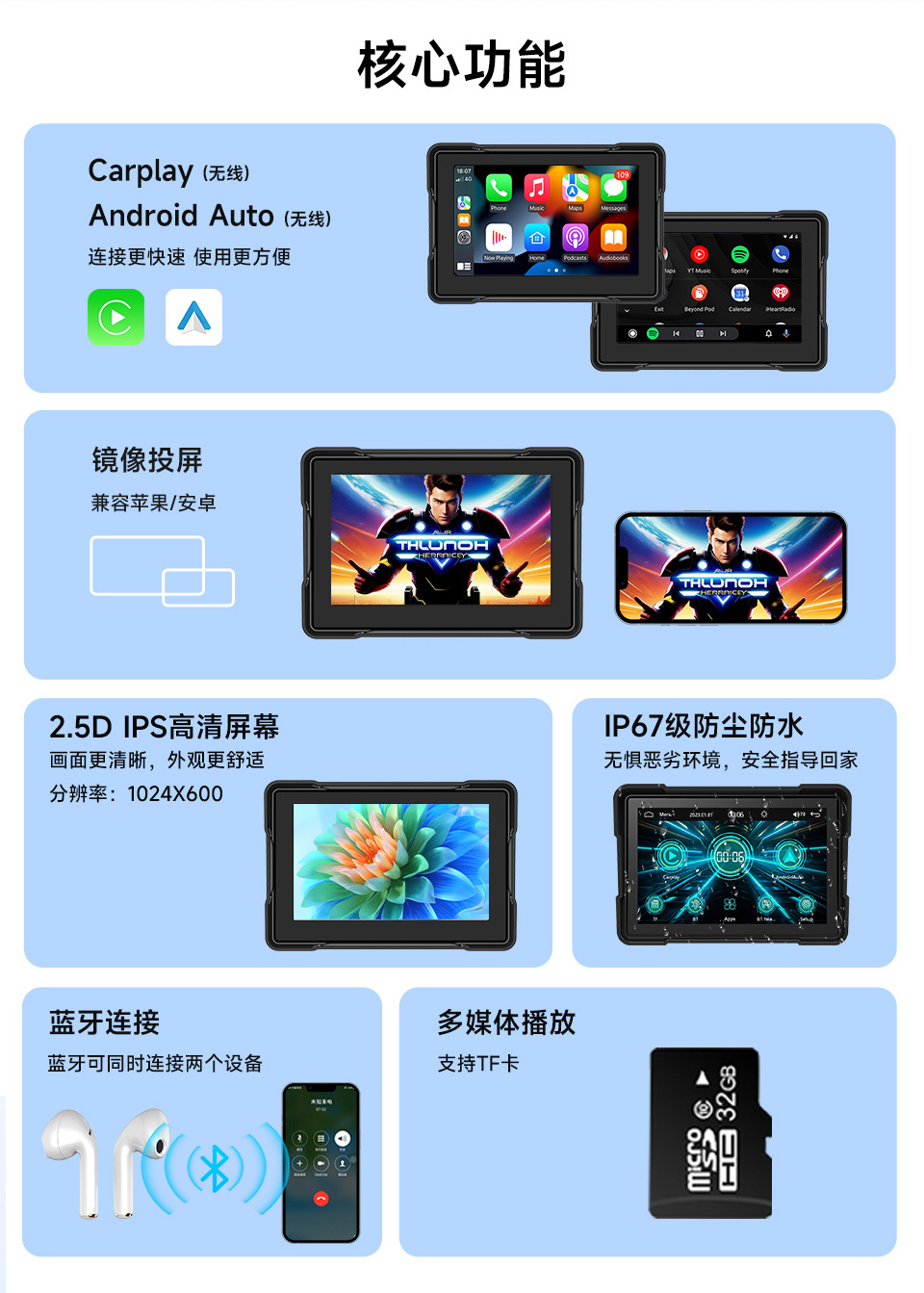 7-дюймовый / 5-дюймовый видеорегистратор для мотоцикла, навигатор, HD портативный, беспроводной Carplay