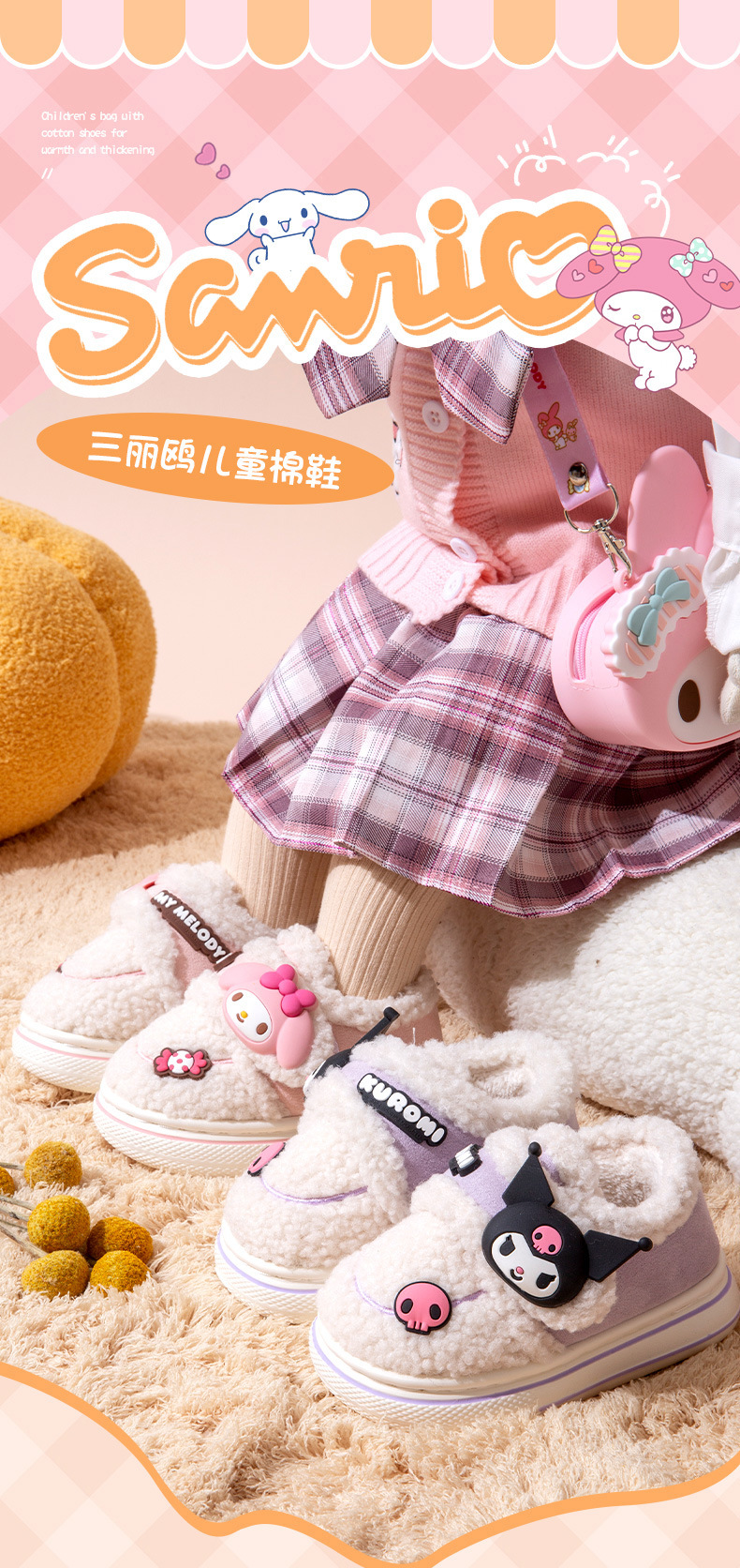 Детские хлопковые тапочки Kulomi осень и зима, теплые флисовые тапочки для девочек, родительско-детские хлопковые ботинки