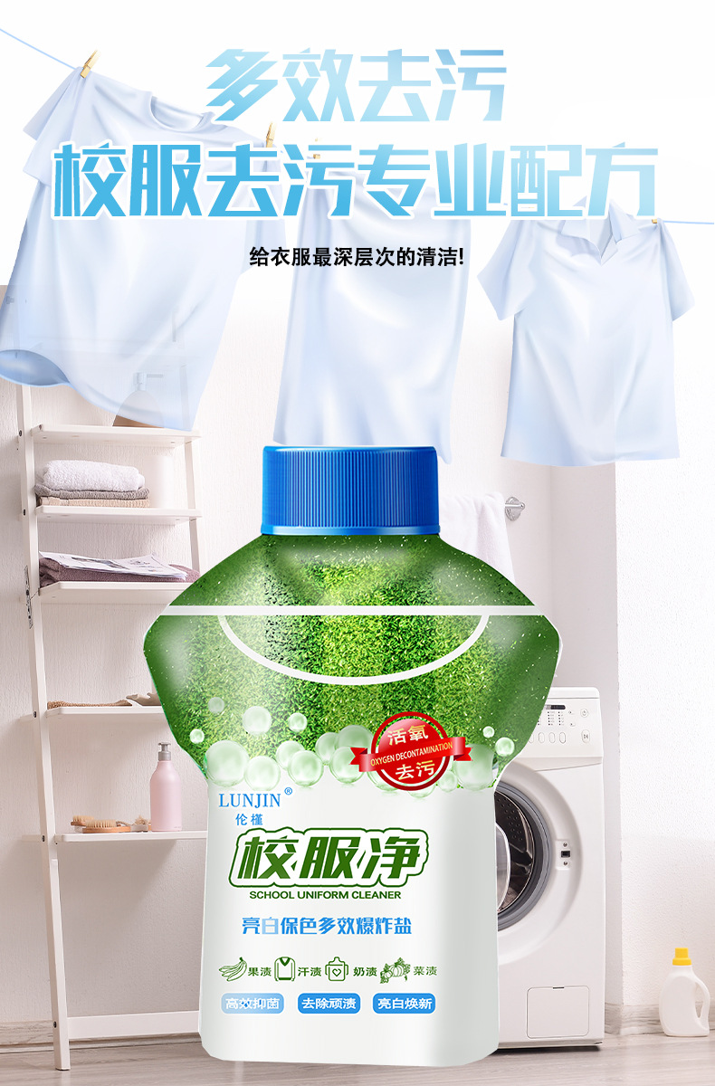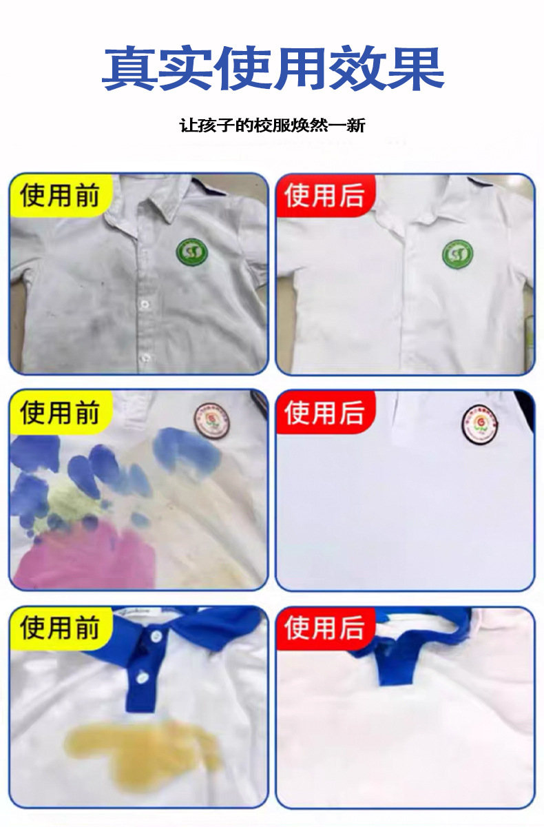 Униформа для школы, чистый яркий белый цвет, взрывной соль для удаления пятен, сильное отбеливание одежды