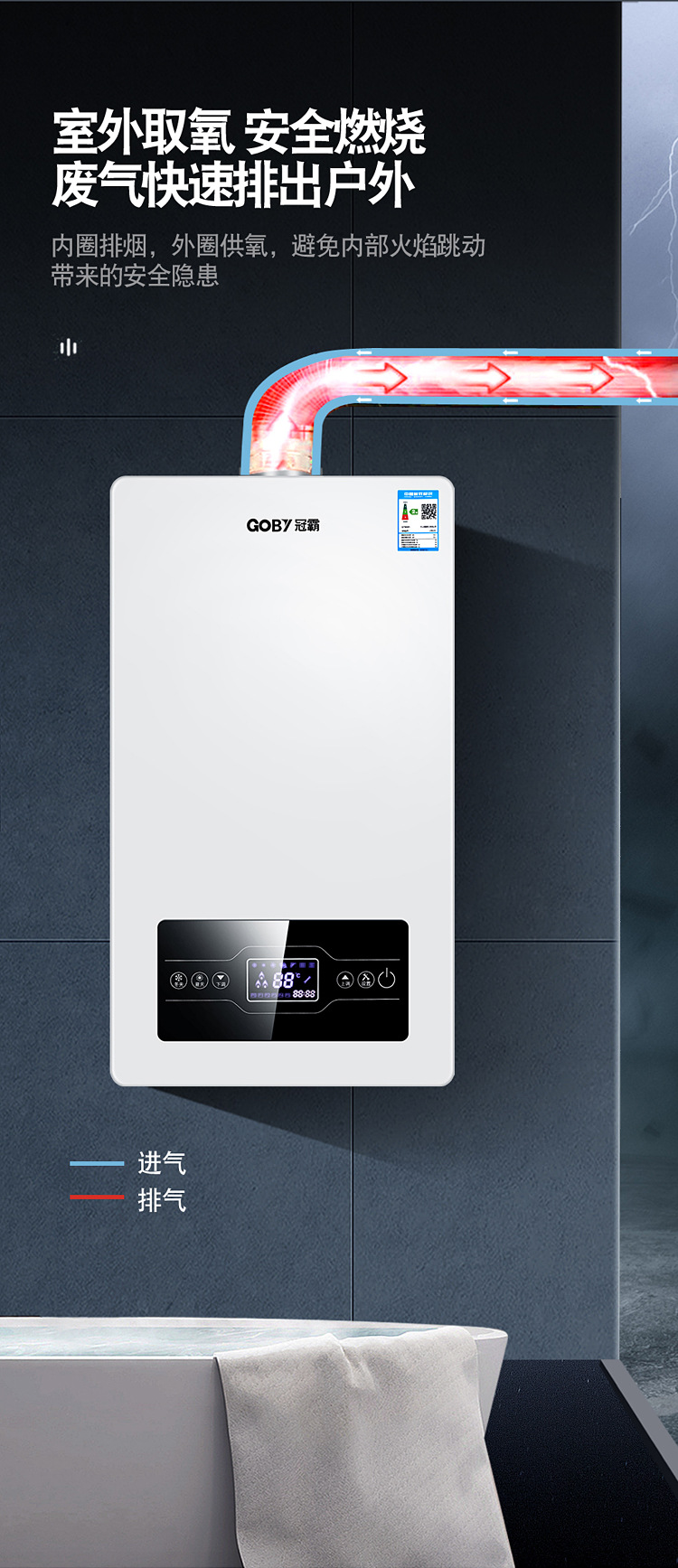 Настенный котел Guanba, газовый настенный котел, природный газ, двойного назначения, обогрев ванной, бытовой котел