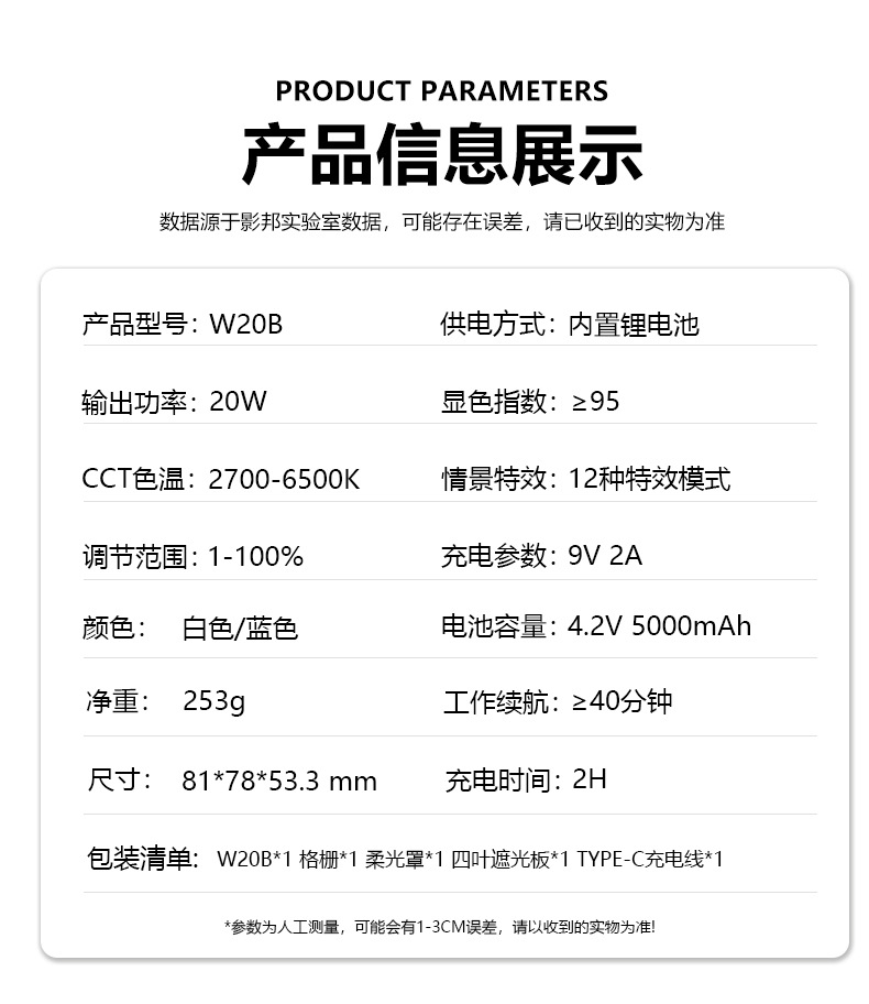 Yingbang 20W карманный свет, портативный свет с двойной цветовой температурой для фотографии