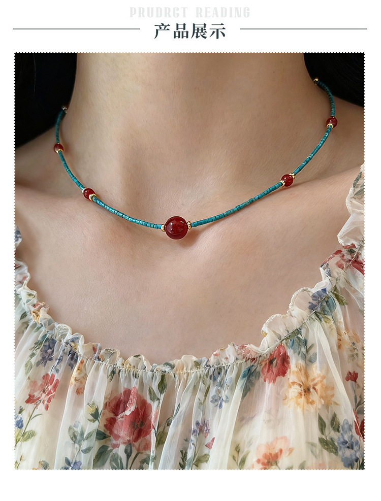 Национальное модное новое китайское ожерелье из бирюзы, южного красного агата, бусы, женская легкая роскошь, высококачественная цепочка на ключицу, оптовая продажа