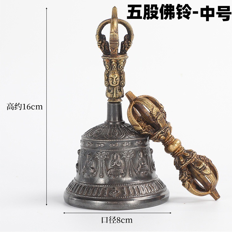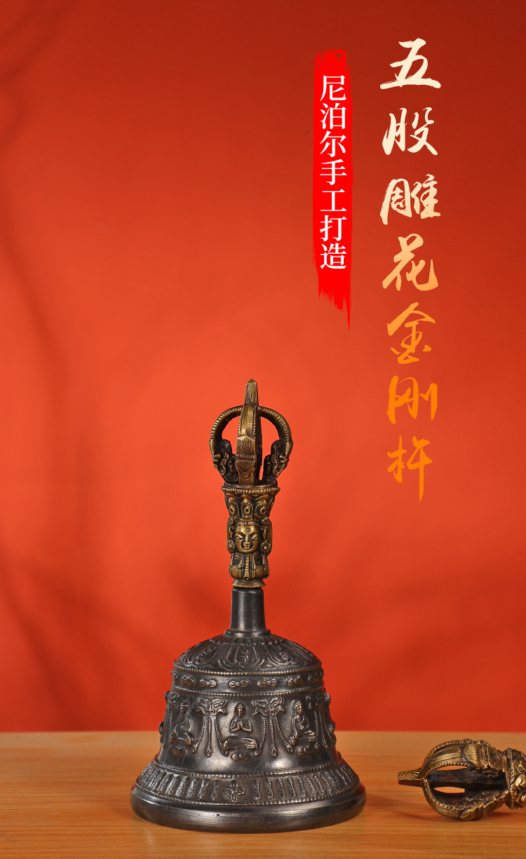 尼泊尔五股金刚铃杵手摇铃佛铃声音清脆大铜铃法器铃铛青铜铃杵