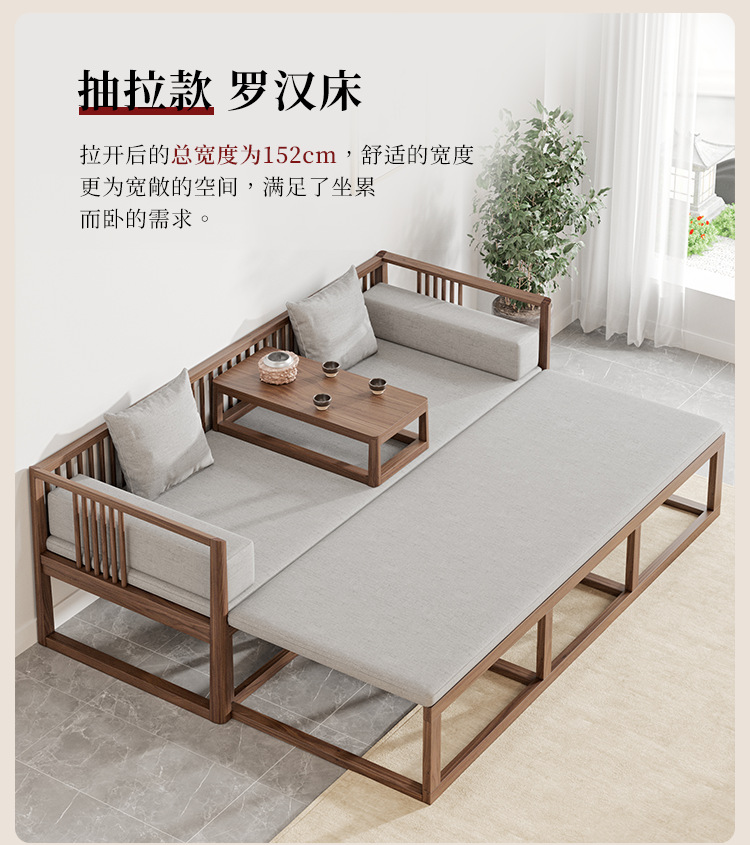 Новый китайский стиль, лохан-кровать, выдвижная, полностью массивная, складная, двухцелевой диван-кровать