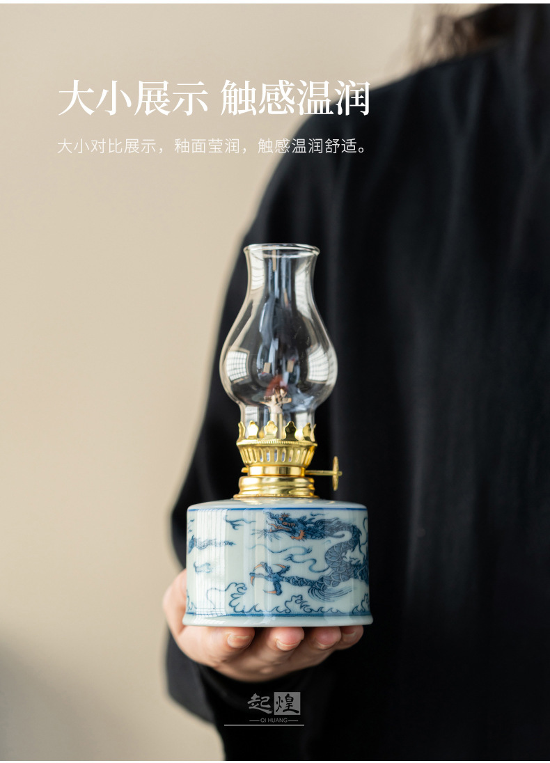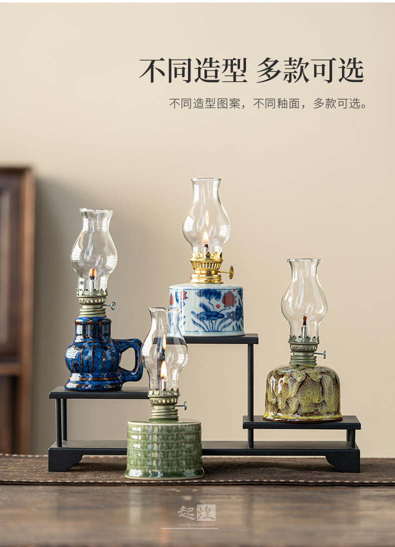 Керамическая лампа, изменения в печи, украшения для чайной комнаты, креативная синяя и цветочная лампа, атмосферная лампа