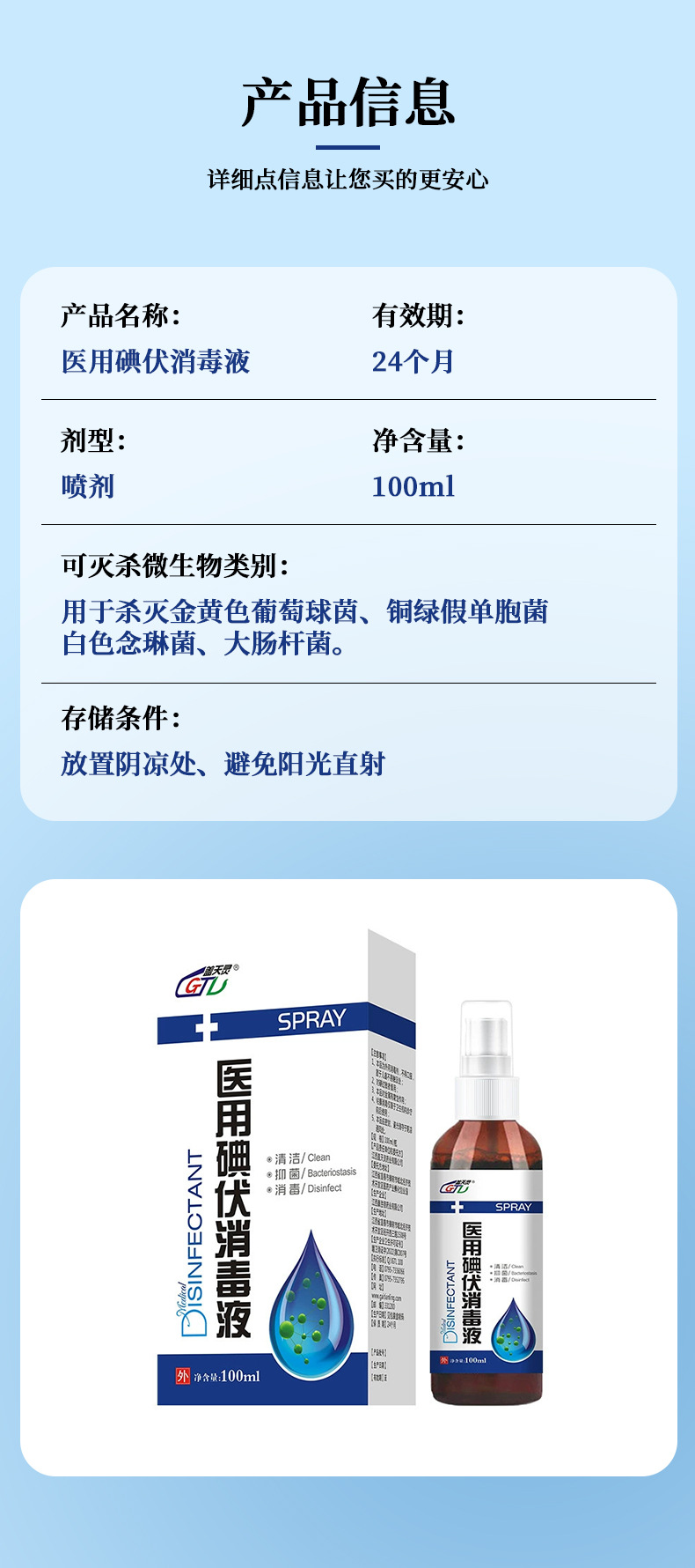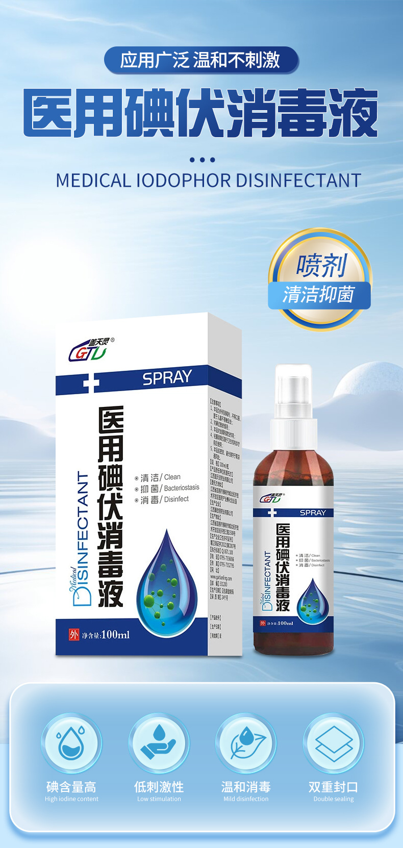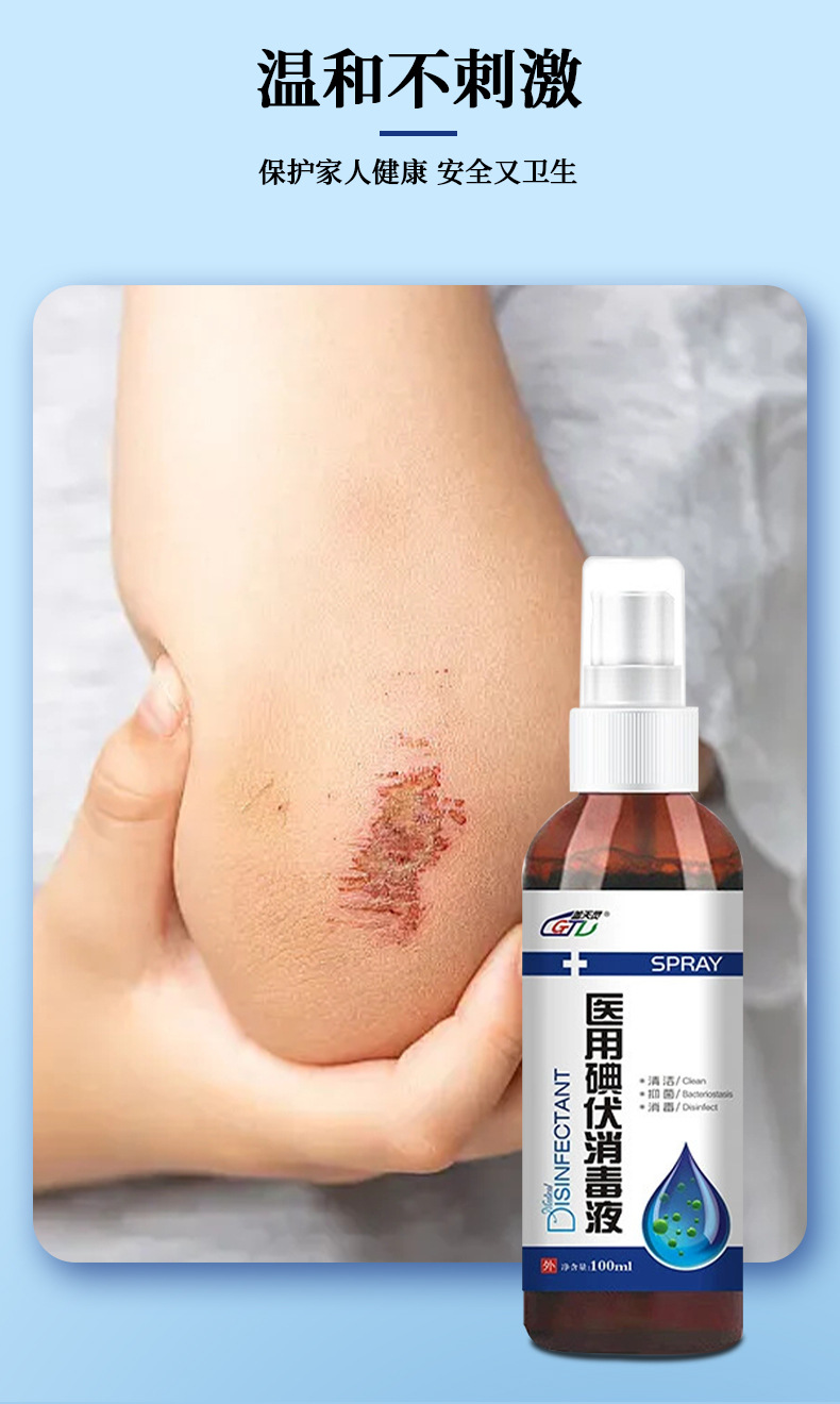 Дезинфицирующее средство Gaitianling, медицинское, для очистки кожи, йодный спрей 100 мл