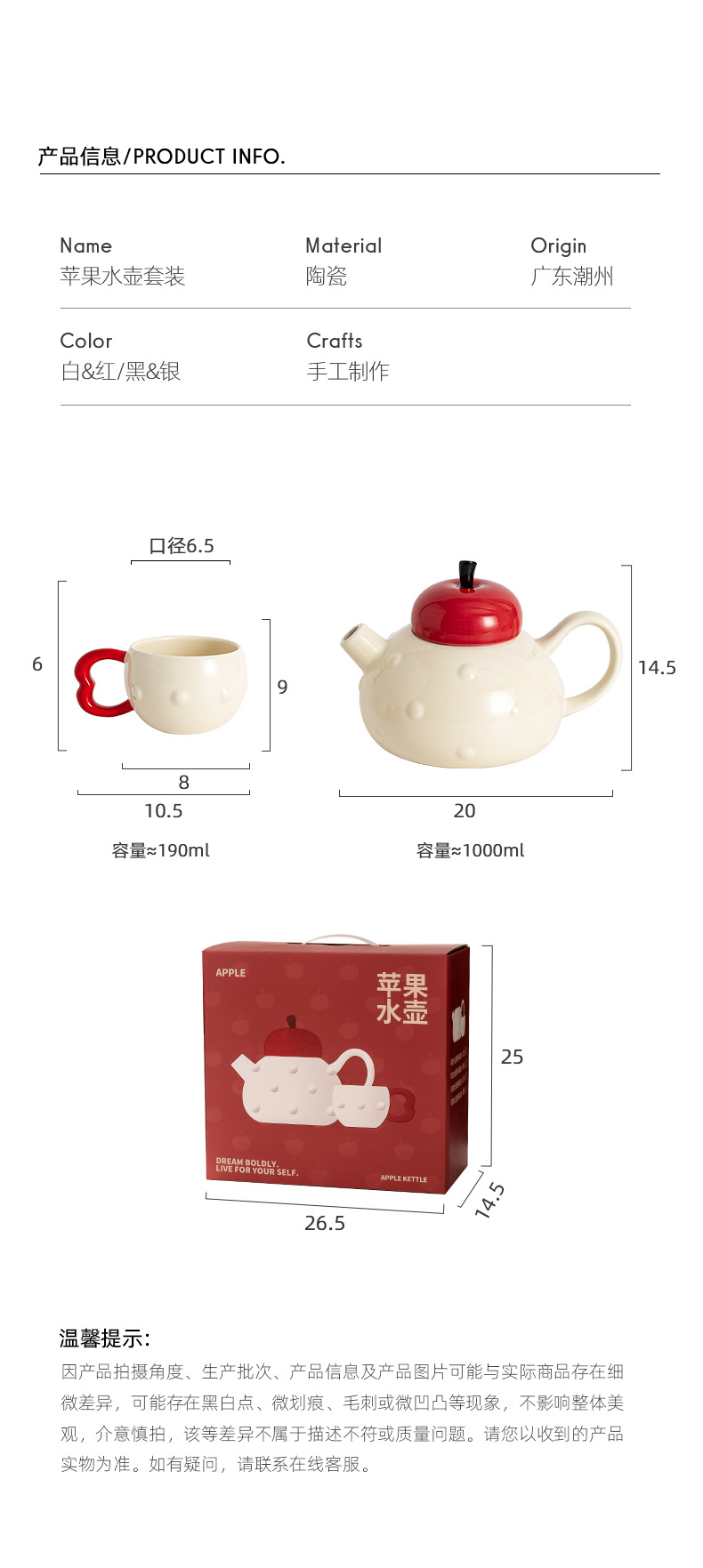 ![]() | Apple water set-1 pot 4 cups-red and white-gift box | 1000 | ¥52.0 / ≈ 633 ₽ | 2088 | 5750181350190 | |