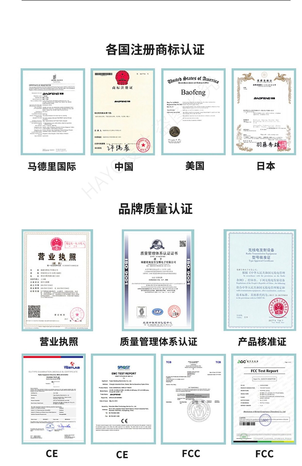 产品证书: