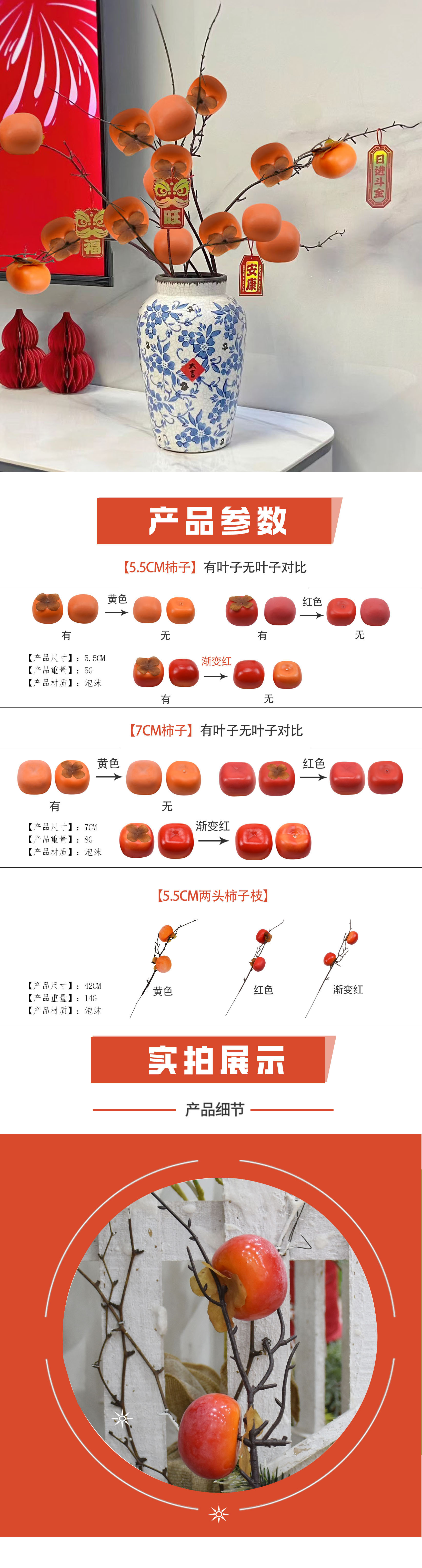 仿真柿子果实配件假水果摆件客厅装饰摆设干果实柿柿如意仿真柿子