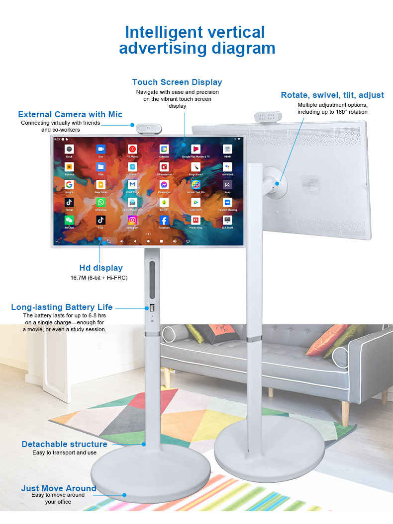 27.8 дюймовый процессор, экран будет двигаться, домашний фитнес, модный горячий продукт, онлайн-уроки, развлекательные мероприятия