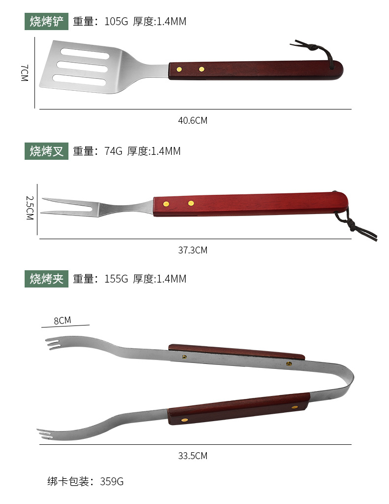 小号木柄烤具尺寸: