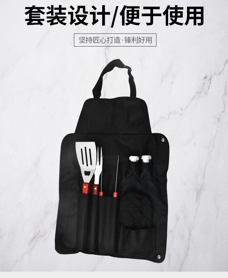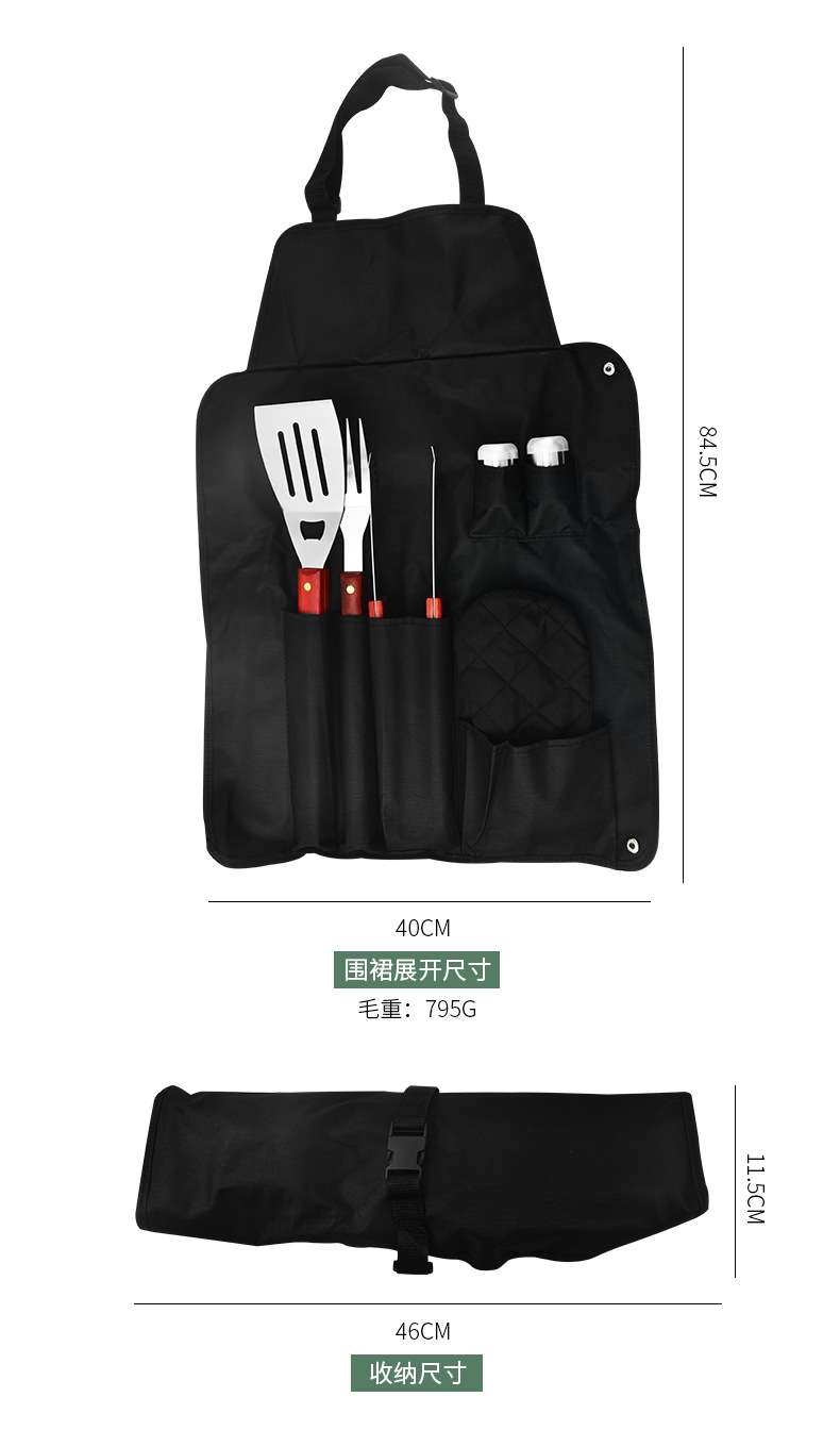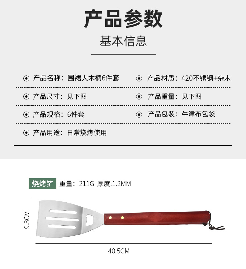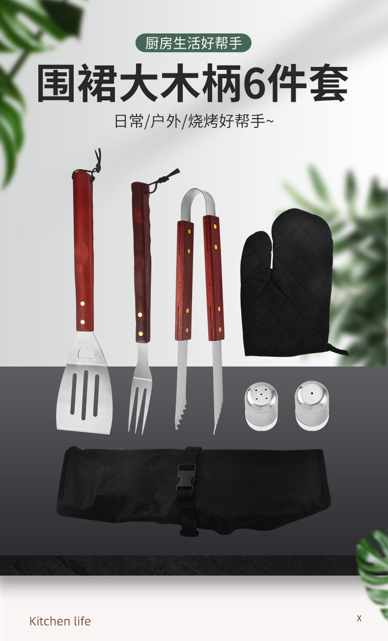 围裙大号木柄烤具6件套: