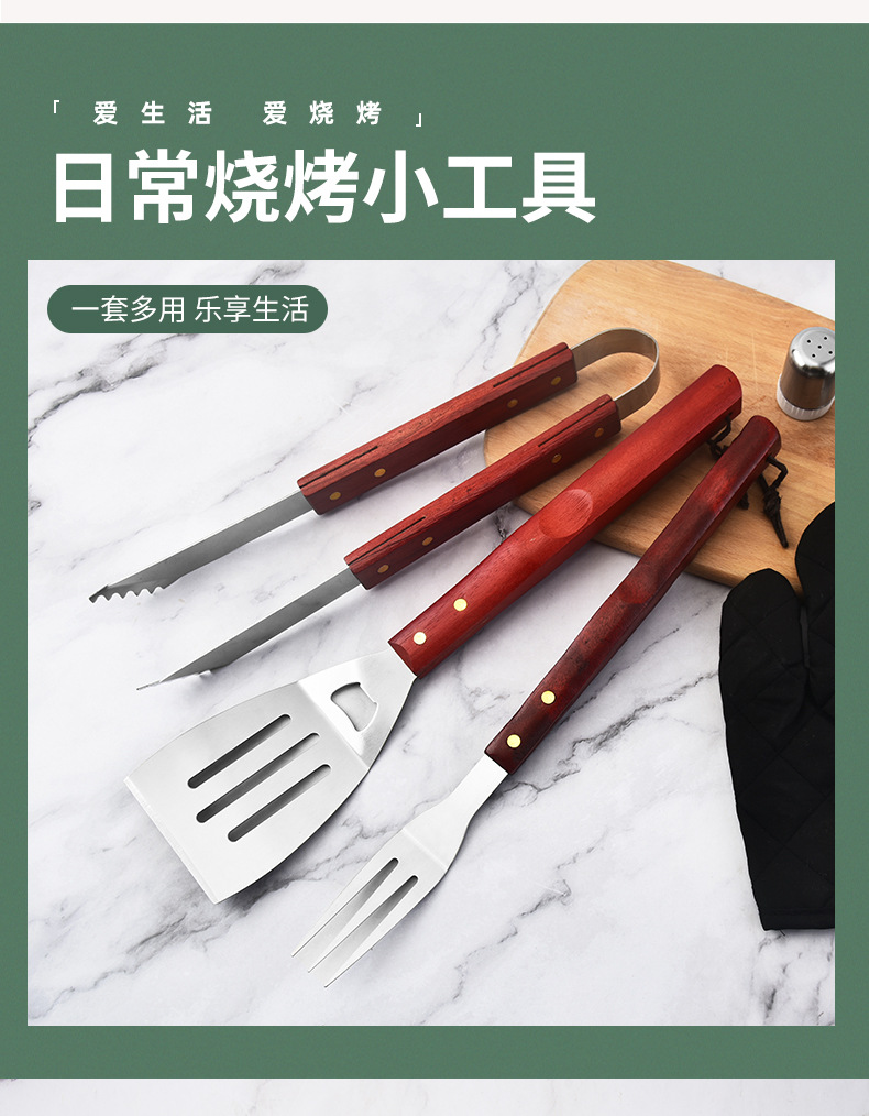 围裙小号木柄烤具6件套:
