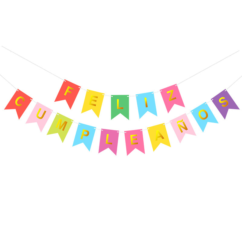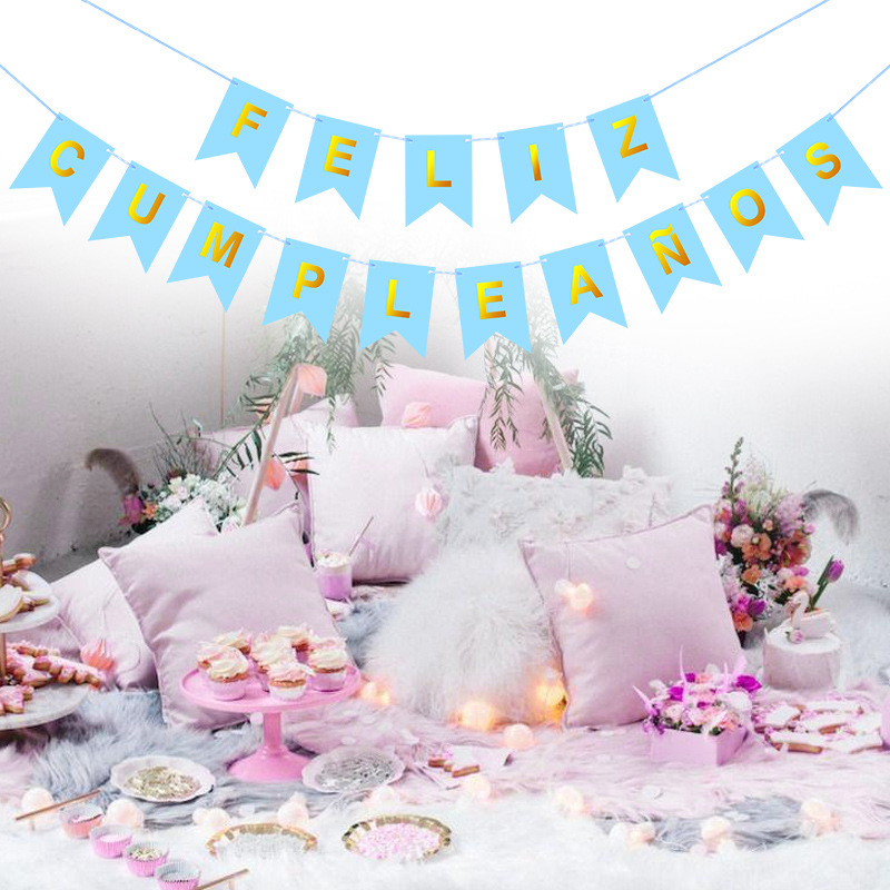 Испанский баннер 'С днем рождения' Feliz, золотой флаг, лазерный блестящий баннер, треугольный флаг с пятиконечной звездой