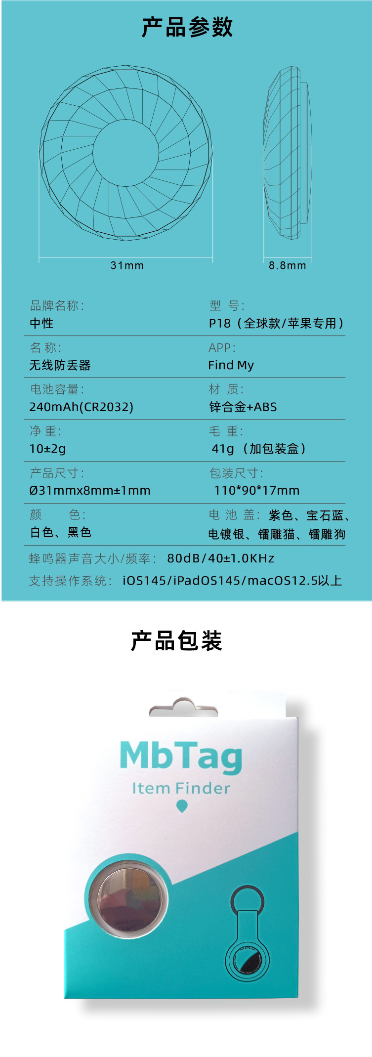 - 长续航保障:内置 240mAh(CR2032 )电池,低功耗设计,持久续航,无需频繁更换电池,持续守护你的物品 。