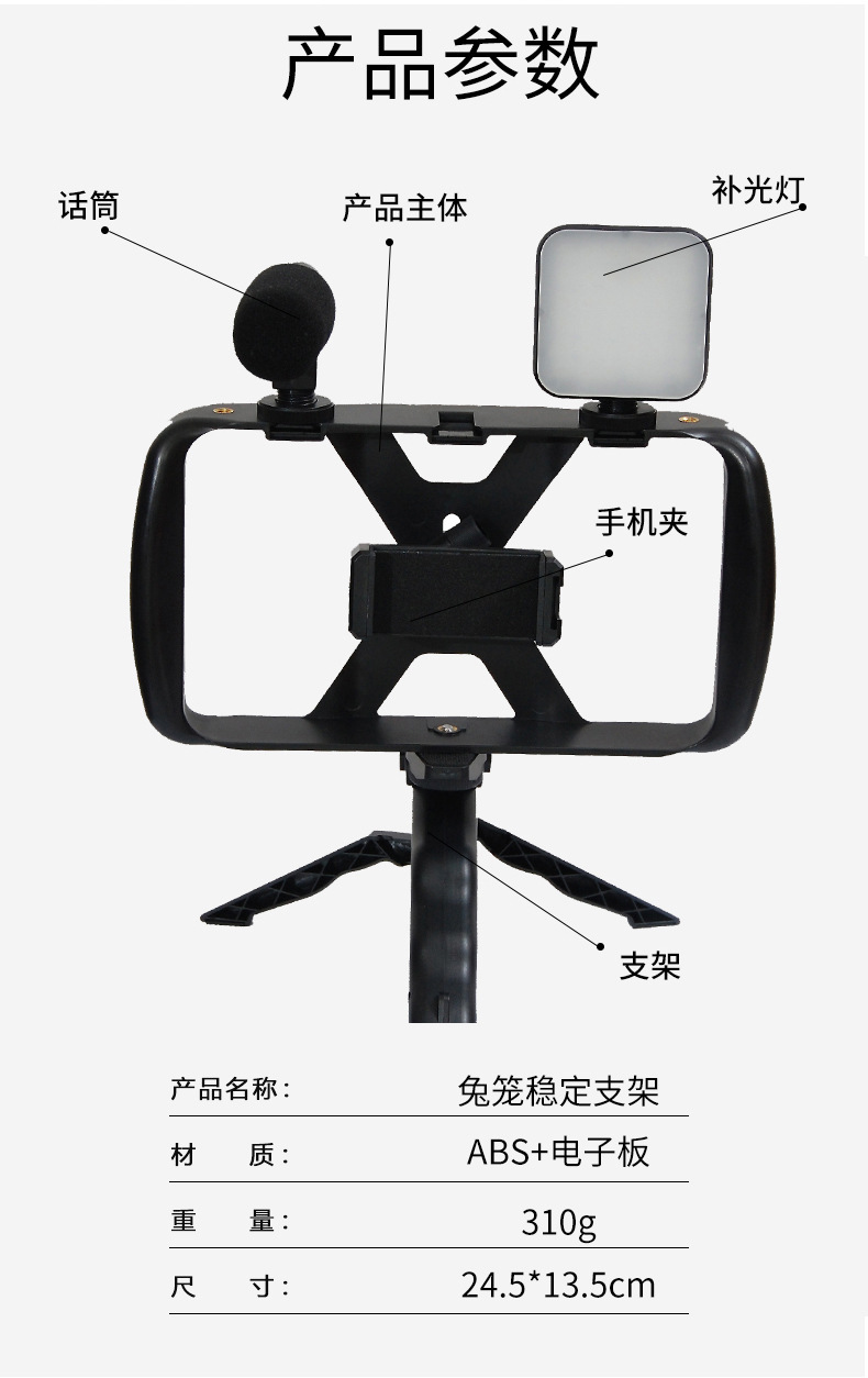 Список упаковки Rabbit cage stability bracket + beauty leg bracket + fill light + bluetooth remote control + microphone