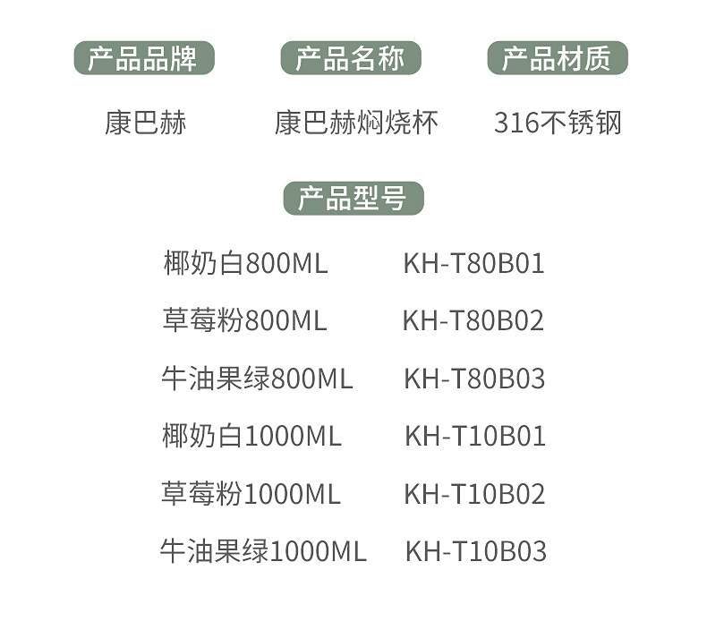 ![]() | Avocado green | 800ml | ¥79.0 / ≈ 961 ₽ | 1190 | 5761218199507 | |