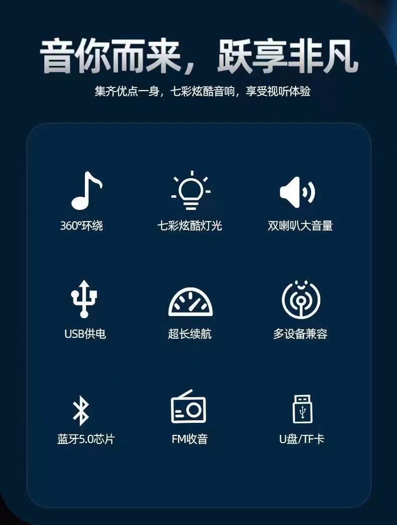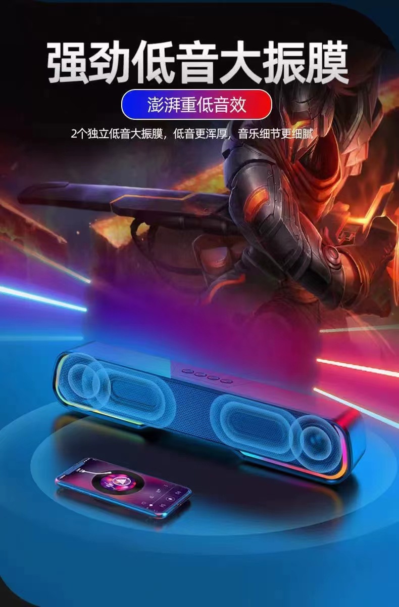 外贸爆款长条无线蓝牙音箱便携七彩跑马灯RGB发光台式USB电脑音响