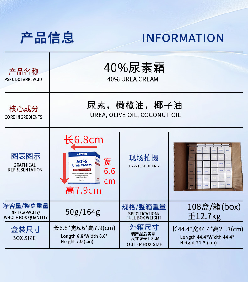 📦 | Full english 40% urea cream/50g box (for export only, domestic sales prohibited) | 3шт: ¥9.80, 1000шт: ¥8.80, 3000шт: ¥7.80 | 4615 | 5954307555079 |