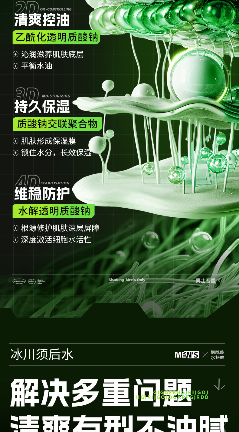 Тонер Bisutang Glacier после бритья охлаждающий контроль масла успокаивающий дискомфорт при бритье эксклюзивный уход для мужчин