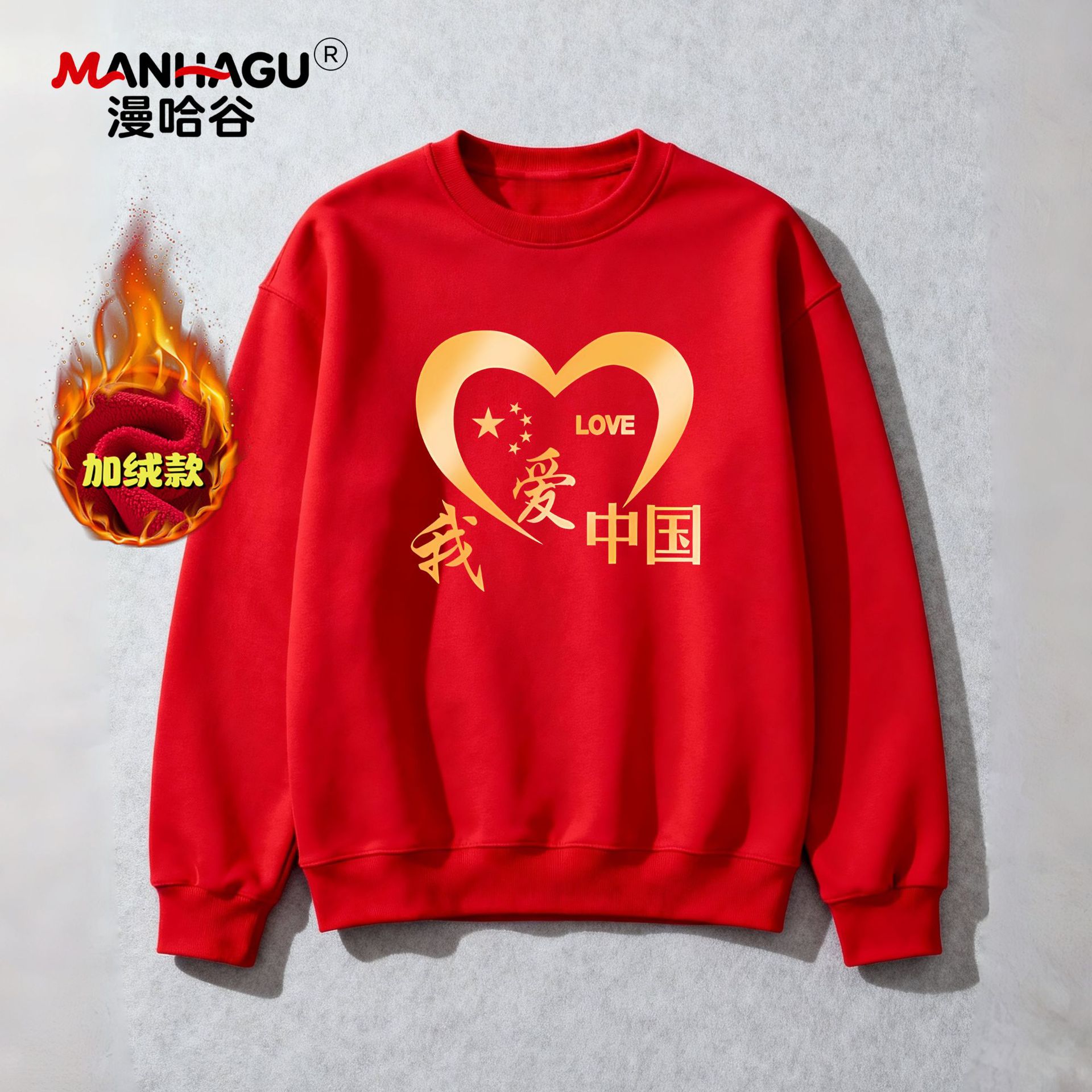 MANHAGU/Manha Valley Я люблю Китай Красный флисовый свитер Свободная группа Новогодняя классная одежда Праздничный худи Тренд