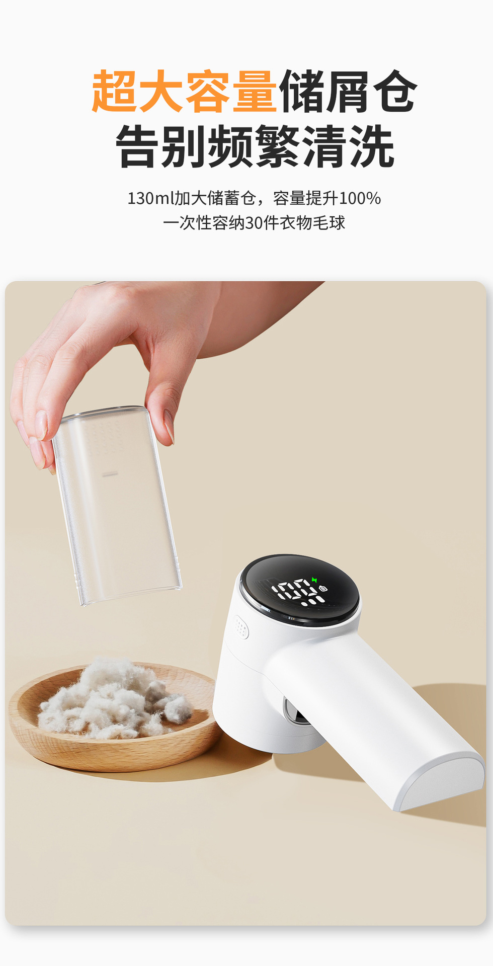 超大毛球仓可视设计,容量清晰知晓易清理。