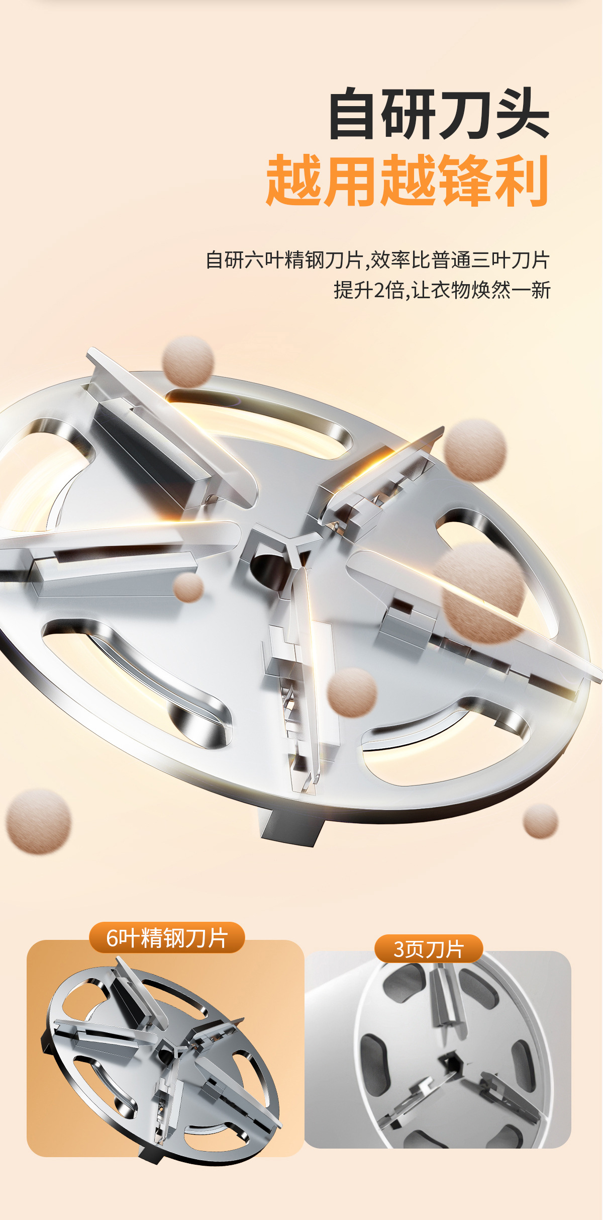 精钢六叶刀片,灵活锋利快速修剪。
