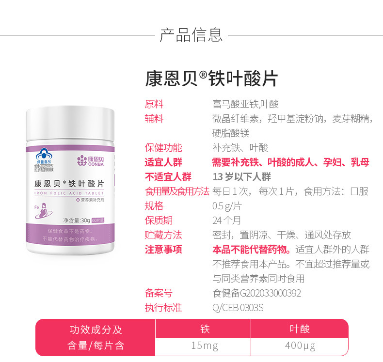 Таблетки фолиевой кислоты железа Conmbe для беременных женщин до беременности ранняя беременность мужчины беременные женщины специализированный уход за здоровьем