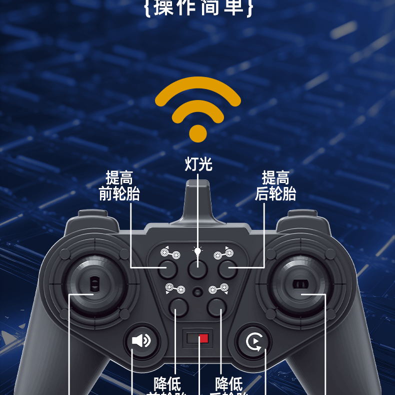 Рекомендуемые функции Taillight spray, one-click demonstration, multiplayer play, 360-degree drift rotation, handle multi-function remote control, simulated exhaust