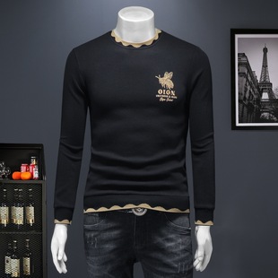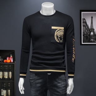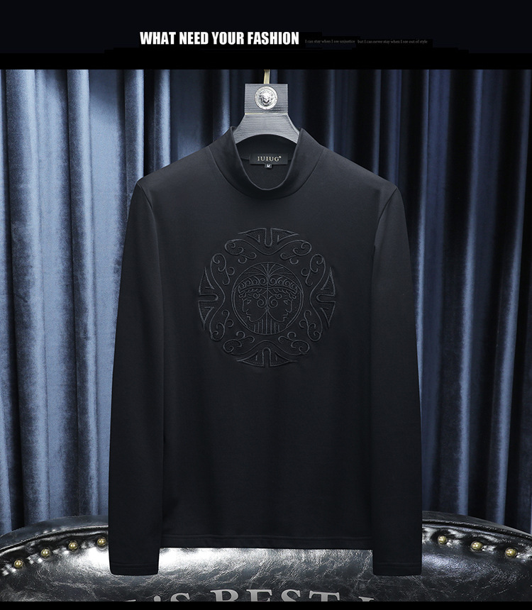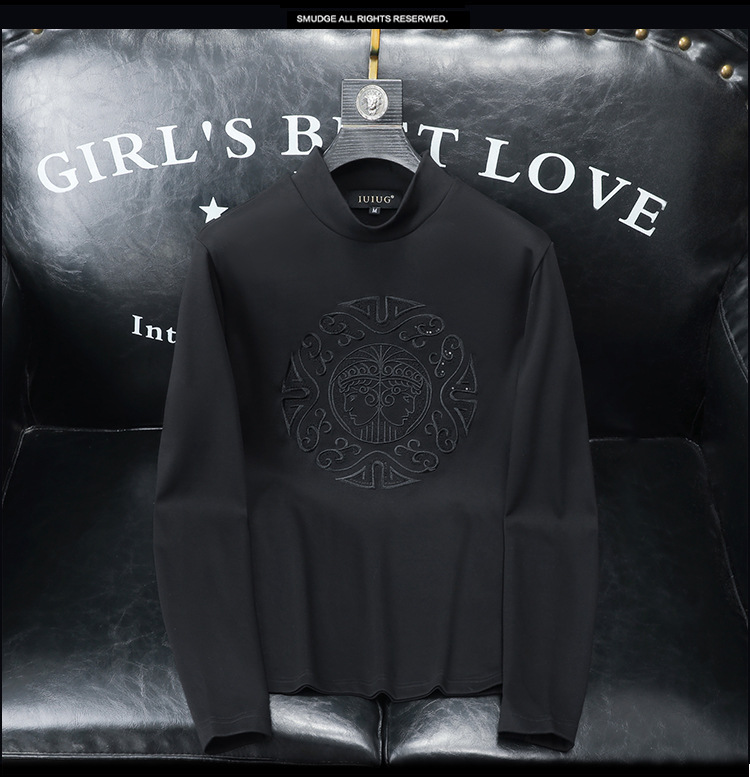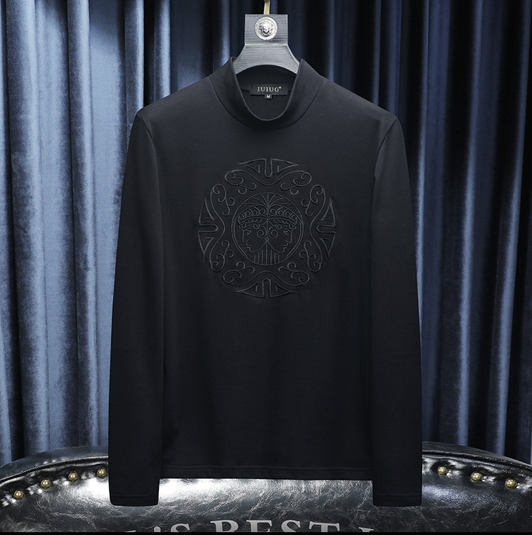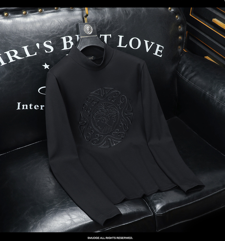 Мужская осенне-зимняя новая доступная роскошная качественная полуторка с флисовой подкладкой, утолщённая нижняя футболка с вышивкой