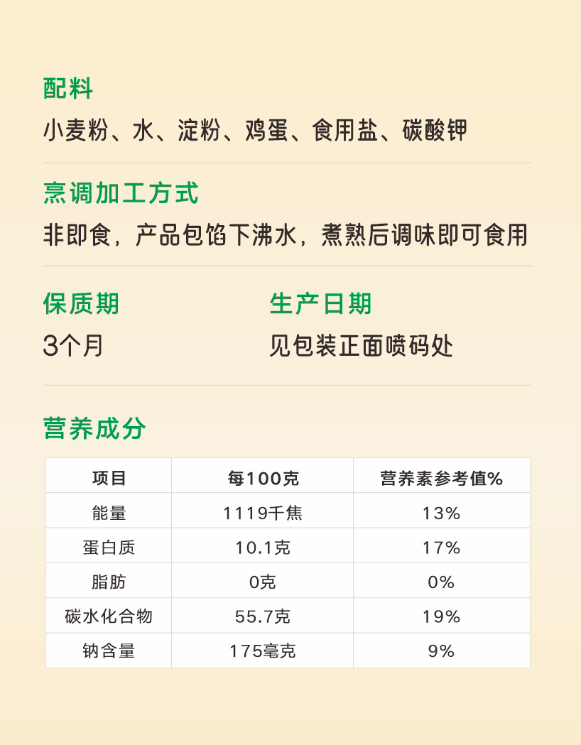 Сырьё и ингредиенты Wheat flour, water, edible starch, edible salt, eggs, sodium carbonate