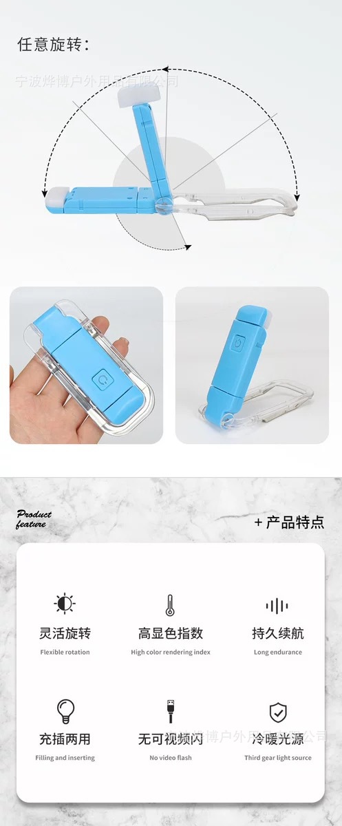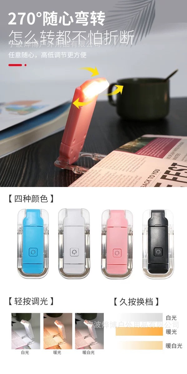 Кросс-бордер, мини светодиодная лампа для защиты глаз, портативная, перезаряжаемая, складная, лампа для чтения с зажимом