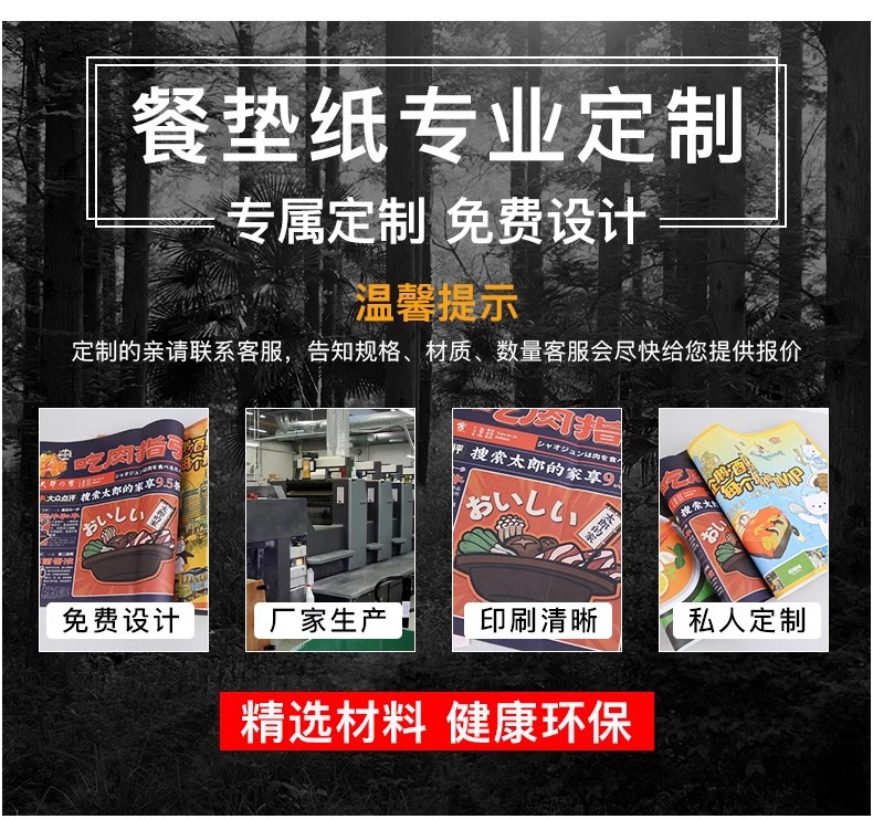 ![]() | Free design/urgent orders made immediately | Custom printing of placemats (minimum order of 1000 sheets*delivered in 3-5 days) | ¥6.0 / ≈ 73 ₽ | 16100 | 6095186358823 |