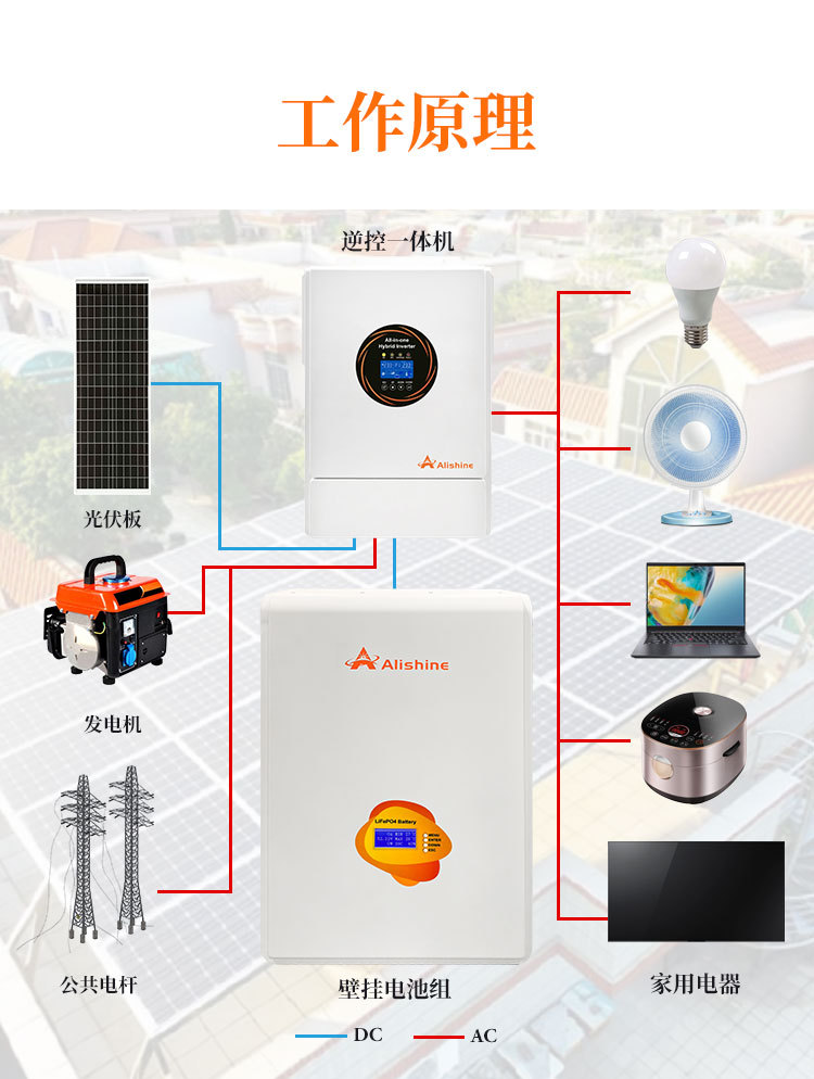 Солнечная генерация для дома, 220В, автономная система, 5КВт, настенная батарея