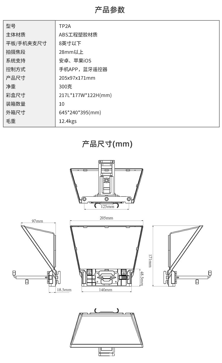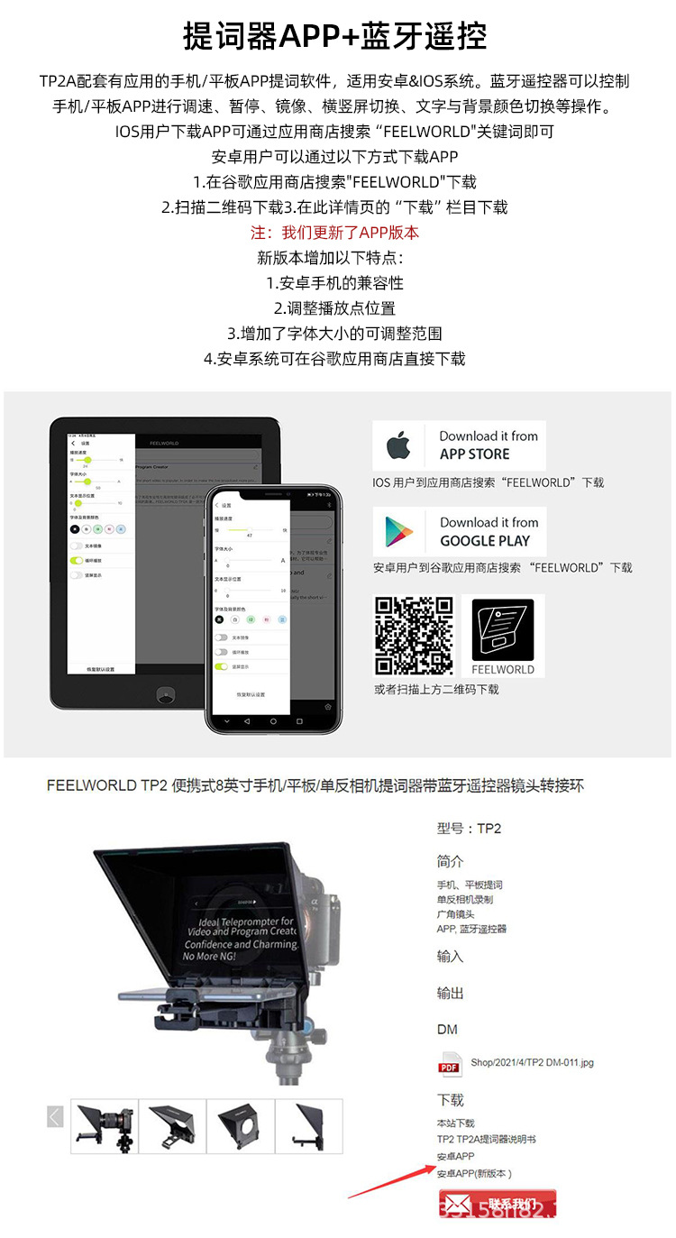 Портативный телесуфлер Feelworld Tp2A 8 дюймов для мобильного телефона/планшета/SLR камеры с Bluetooth пультом управления