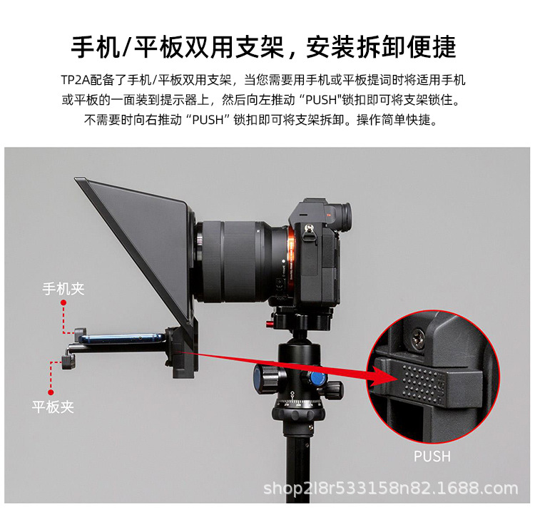 Список упаковки Mobile phone/tablet dual mobile phone holder, magnetic mobile phone holder, lens adapter ring, foam ring, remote control storage bag, dust removal cloth, instructions