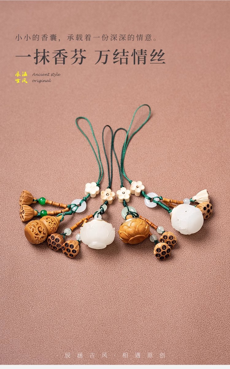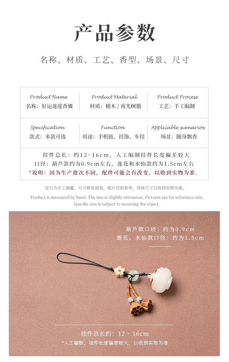 Саше с лотосом на удачу, шариковые благовония, кулон-саше, мобильная цепочка, шарики благовоний, пустой кулон, переносной ароматизатор