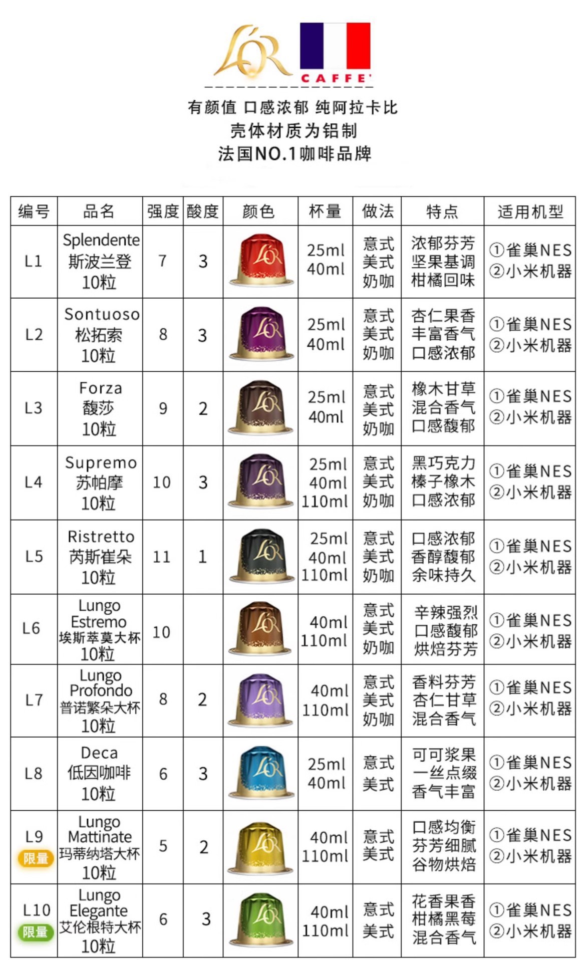 Капсульный кофе Lor французский импорт 3 коробки/30 черного кофе адаптированного к кофемашине Nespresso