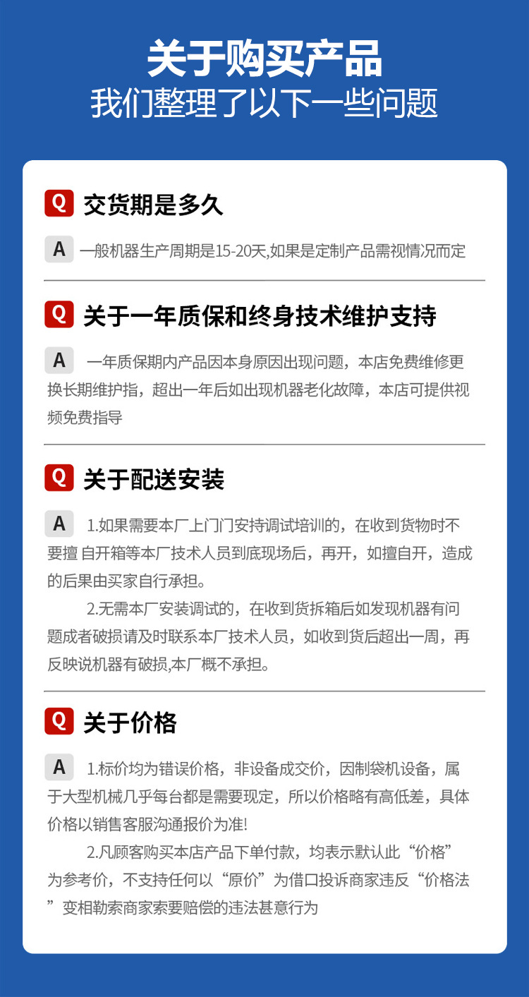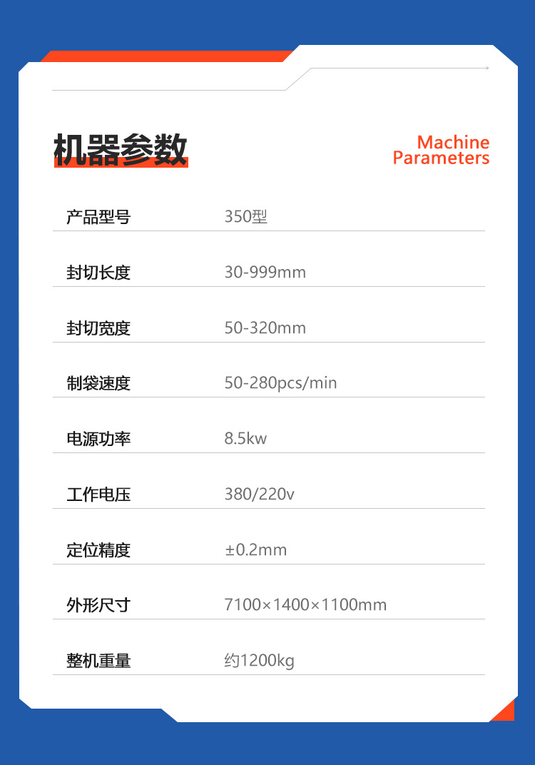 Bag making specifications Consult customer service