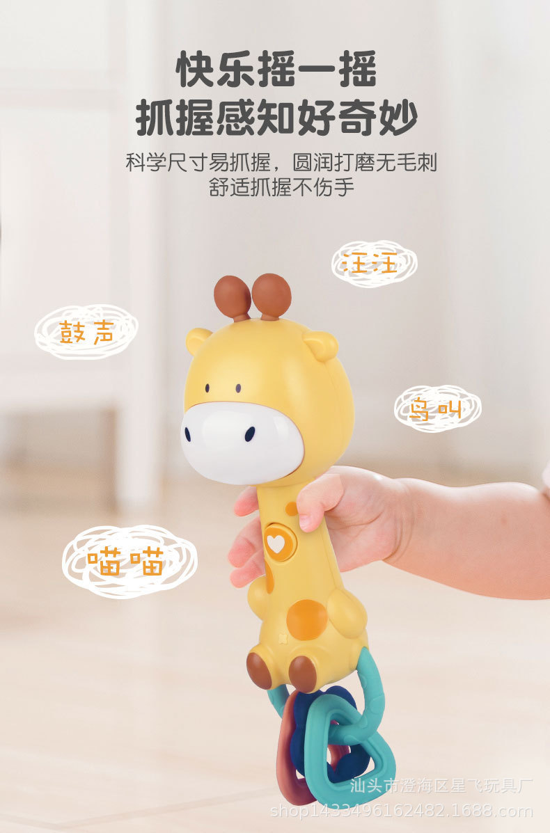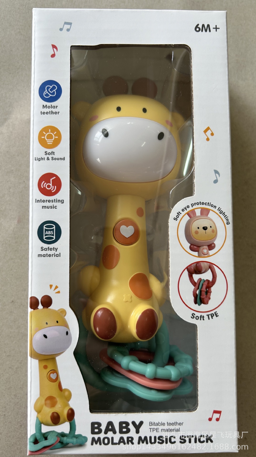 Кросс-бордерная экспортная погремушка мультяшная зубная резинка ритмическая палочка ручная успокаивающая игрушка с музыкой