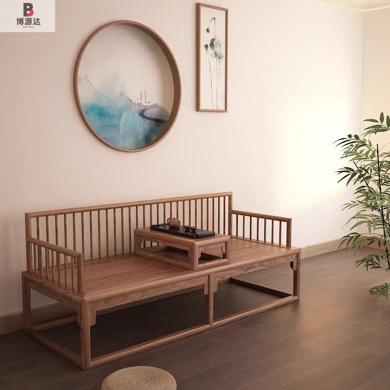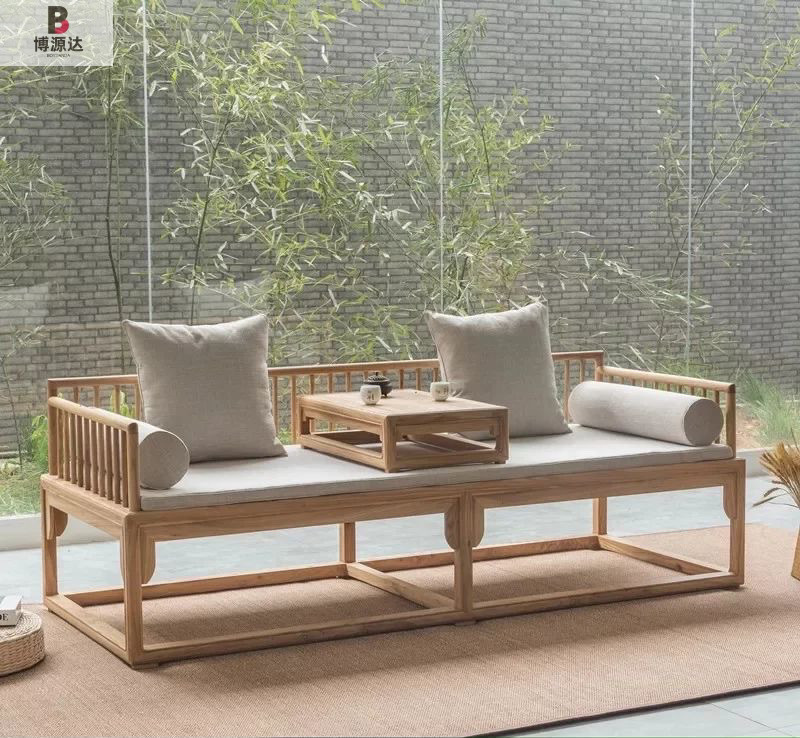 Новый китайский стиль, массивная лохан-кровать, простой ясень, диван для балкона